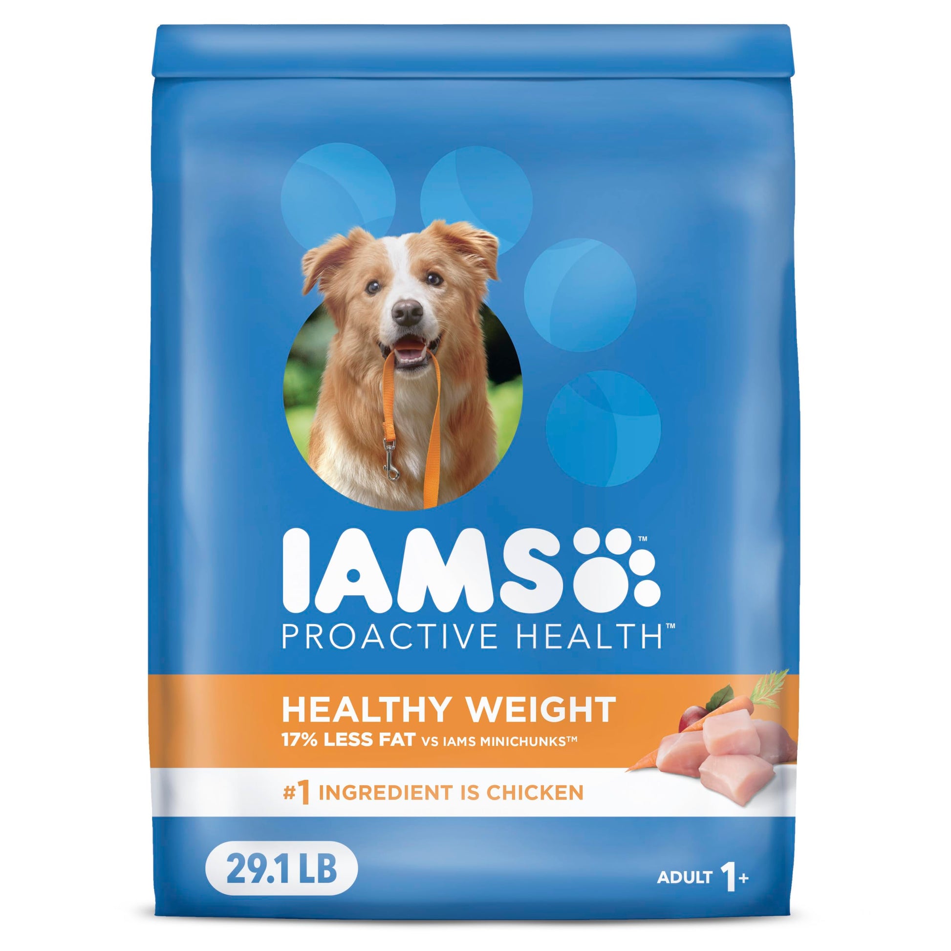 Details: The kibble your dog loves with the nutrition you can count on from IAMS. IAMS Proactive Health Healthy Weight Control Adult Dry Dog Food with Real Chicken is a tasty dry dog recipe your dog will love. Made with real chicken as the first ingredient, wholesome grains to provide essential nutrients, and carbohydrates for healthy energy your dog will get irresistible flavor with multiple benefits. With protein sourced from chicken and eggs to support firm, strong muscles, this product also contains L-Carnitine for metabolism support and 17% less fat than Minichunks. Help keep your dog healthy, happy, and playful for life with tailored nutrition from IAMS dog food.