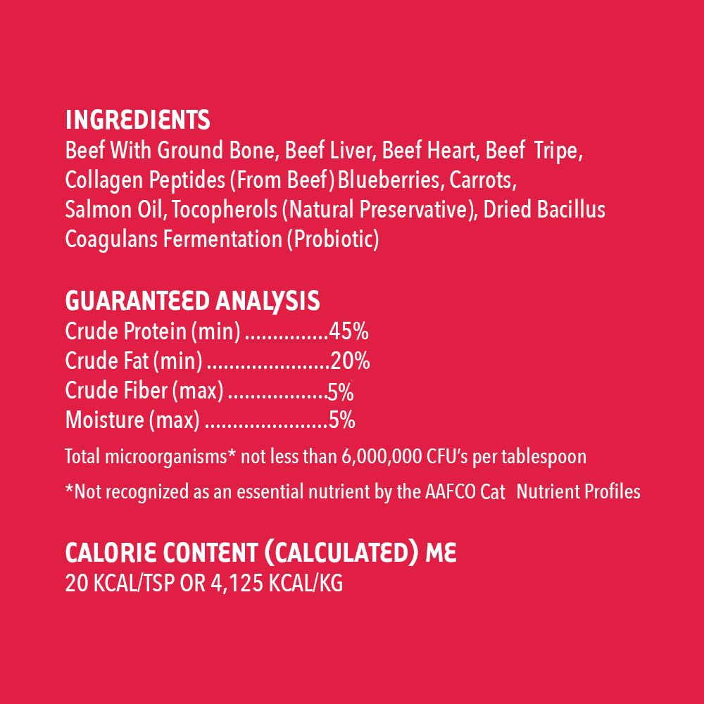 • Wholesome Beef Blend – Made with premium beef, including ground bone, liver, heart, and tripe, for a protein-packed, biologically appropriate diet.