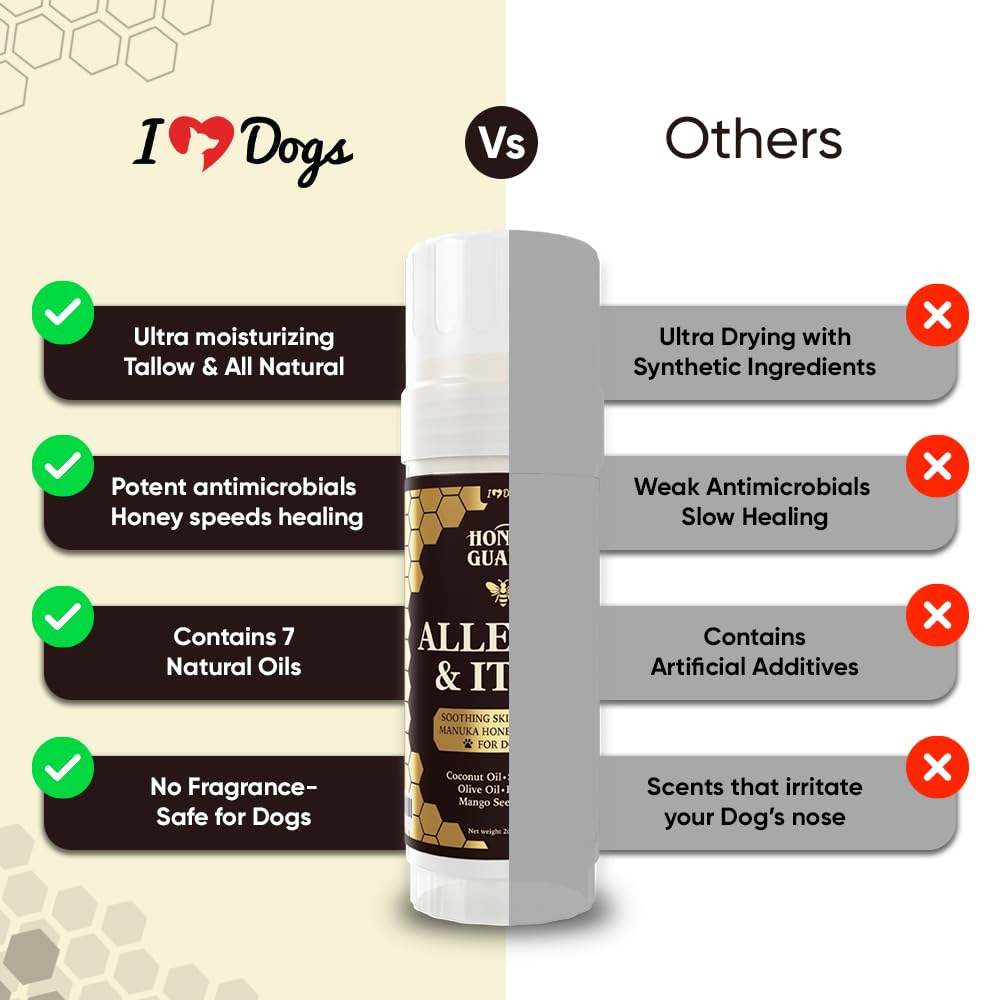 iHeartDogs Honey Guard Allergy & Itch Relief Dog Healing Balm for Paw, Nose & Skin - Hot Spot & Dry Skin Soother with Manuka Honey, Tallow, Shea Butter & Mango Seed Oil - 2oz