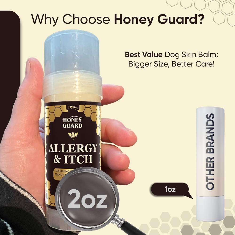• How to Use Honey Guard Allergy & Itch Relief Dog Healing Balm: Clean and dry the affected area, then twist the stick to reveal the balm and apply directly to itchy or irritated spots. Gently massage in, if desired, and reapply 1-3 times daily or as needed for ongoing relief, ensuring your dog doesn’t lick the area immediately after application.