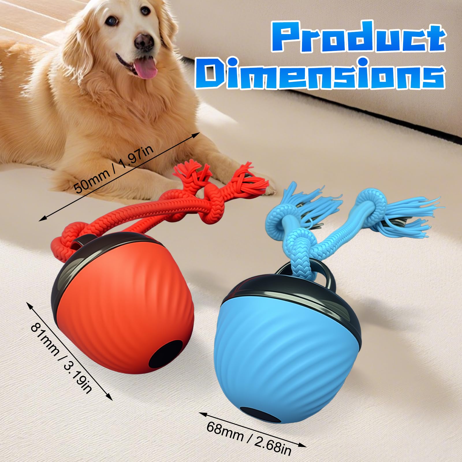 Interactive Dog Toys Ball, 2025 Smart Pet Puppy Ball with Ropes for Indoor Dogs, Path Electric Automatic Moving and Rolling Dogs Toy for Small Medium Large Dogs Daily Training (Red)
