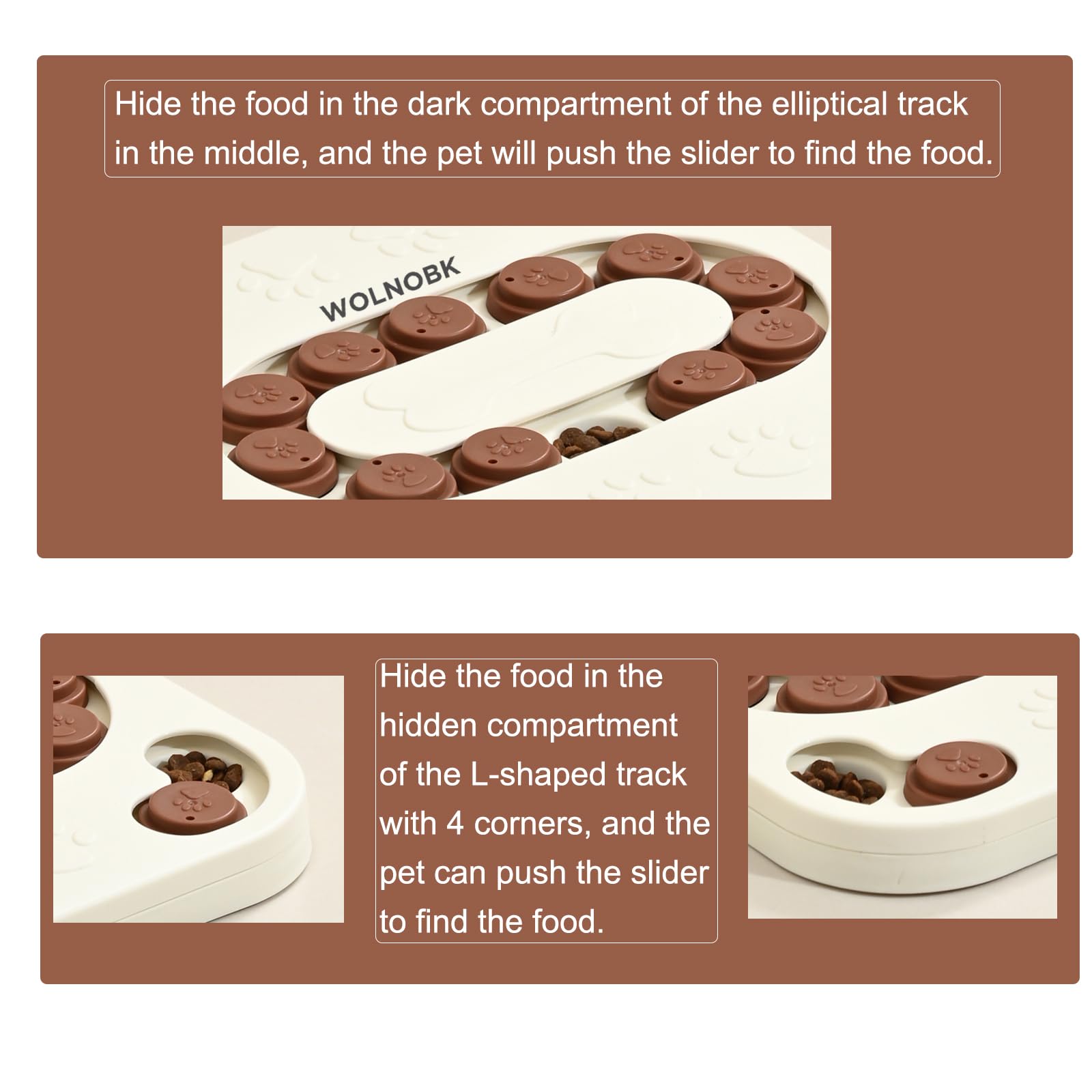 • Gameplay Introduction -The dog toy has a total of 20 hidden compartments, with an elliptical track in the middle and L-shaped tracks at the four corners. Pets can only obtain food by sliding the interactive dog toys with their mouth or paws