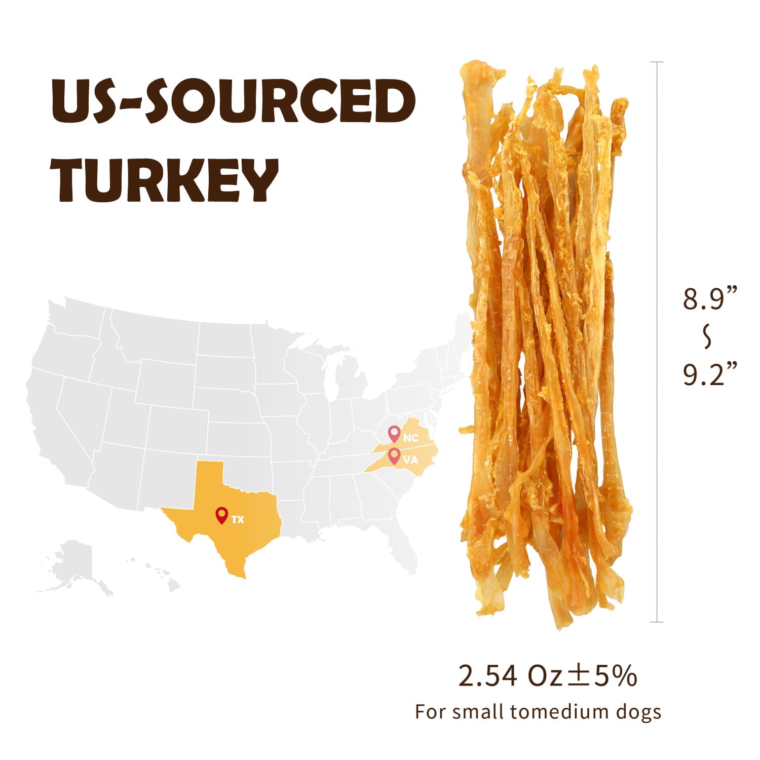 - Hypoallergenic: Natural grain-free dog chew treat is made from pure turkey tendon, suitable even for dogs with sensitive tummies.