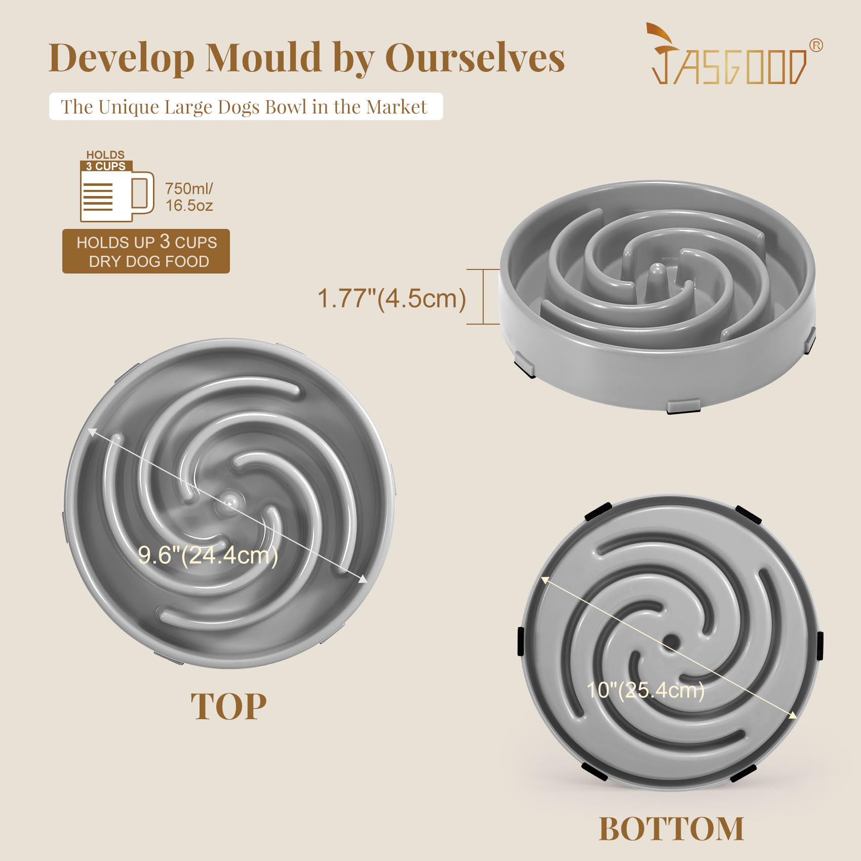 🐶 SIZE&COLOR 🐶--- We have black,blue,pink, dark gray,purple,green,orange color for your choice. Bowl diameter(24.4cm/9.6 “), high(4.5cm/1.77 inches).This slow bowl can holds about 3 cups of dry dog food. The slow feeder dog bowl is better for small and medium dogs.