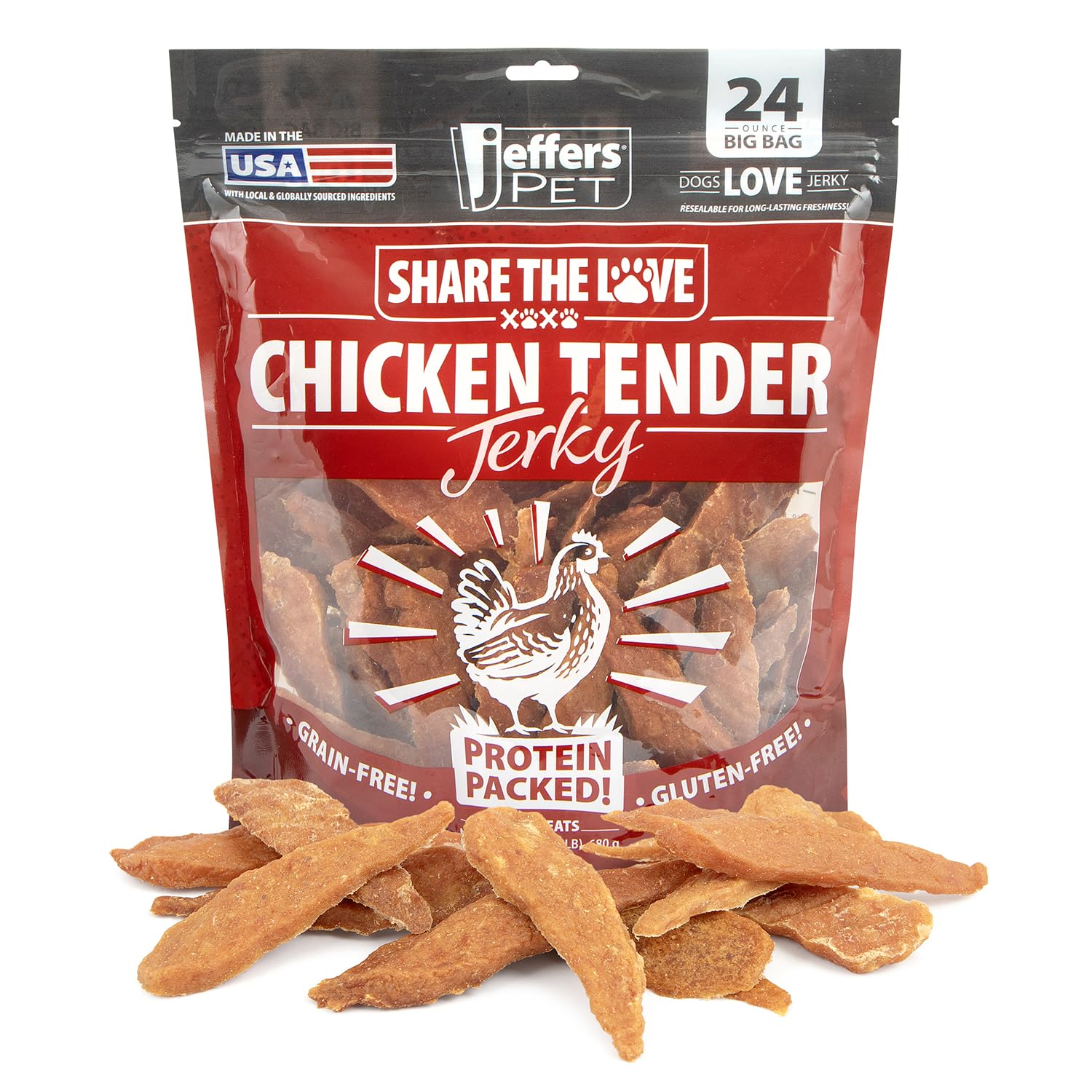 - Made in the USA— Jeffers Pet Chicken Tenders use real chicken breast fillets to create high protein, natural dog treats perfect for all dog sizes, breeds, and ages.