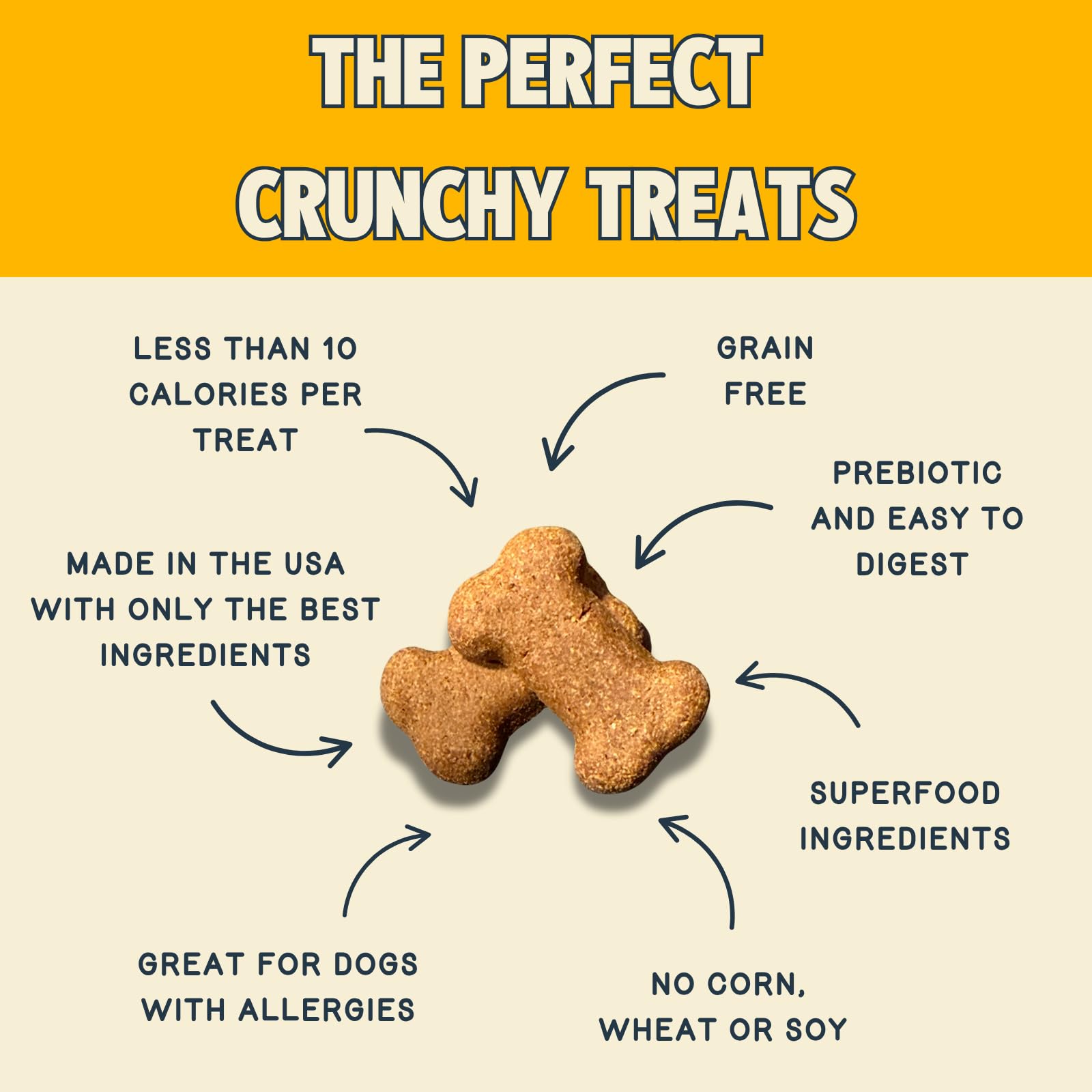 - HEALTHY DOG TREATS - Our treats are made with recognizable & high protein ingredients like peanut butter, crickets, lentils, & flaxseed giving them a sweet yet savory taste that dogs love