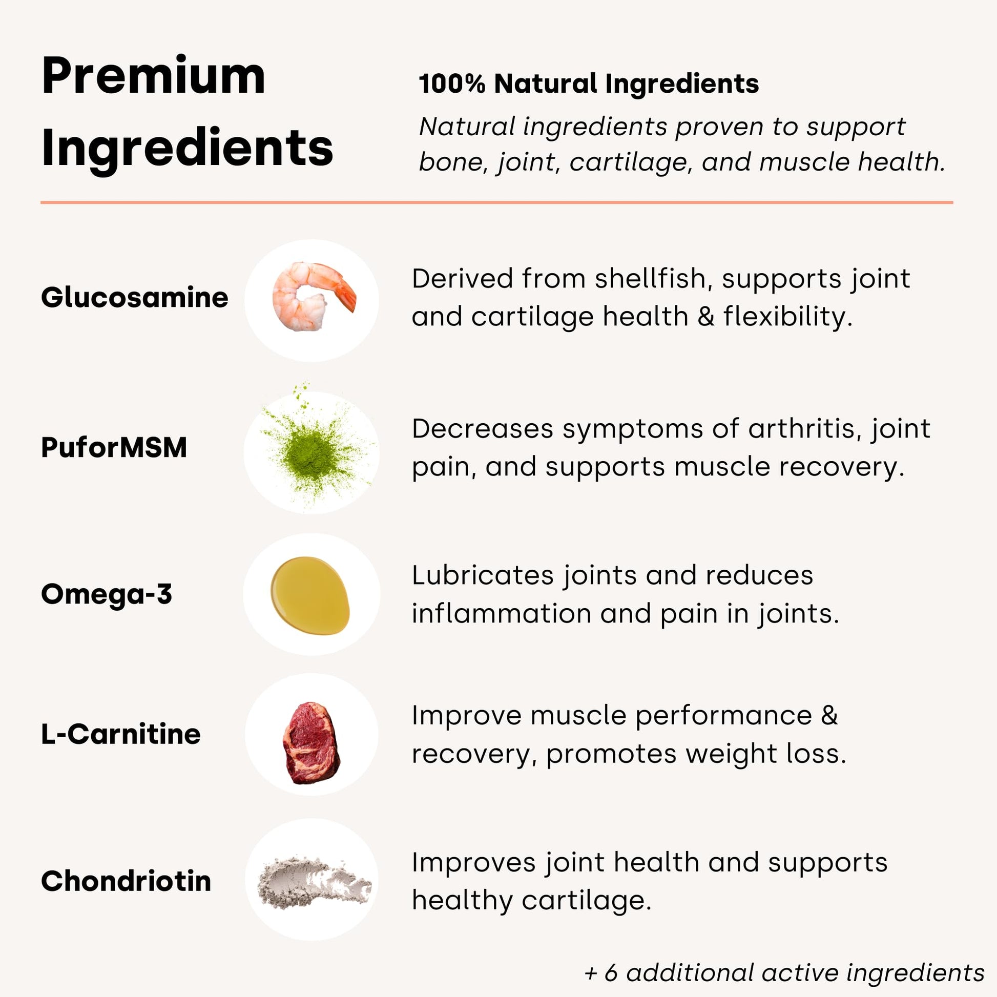 - SCIENCE BACKED, NATURAL INGREDIENTS — Joint supplements for dogs can be highly effective with natural nutrients. Use for any age to help against dog arthritis. Led with glucosamine for dogs.