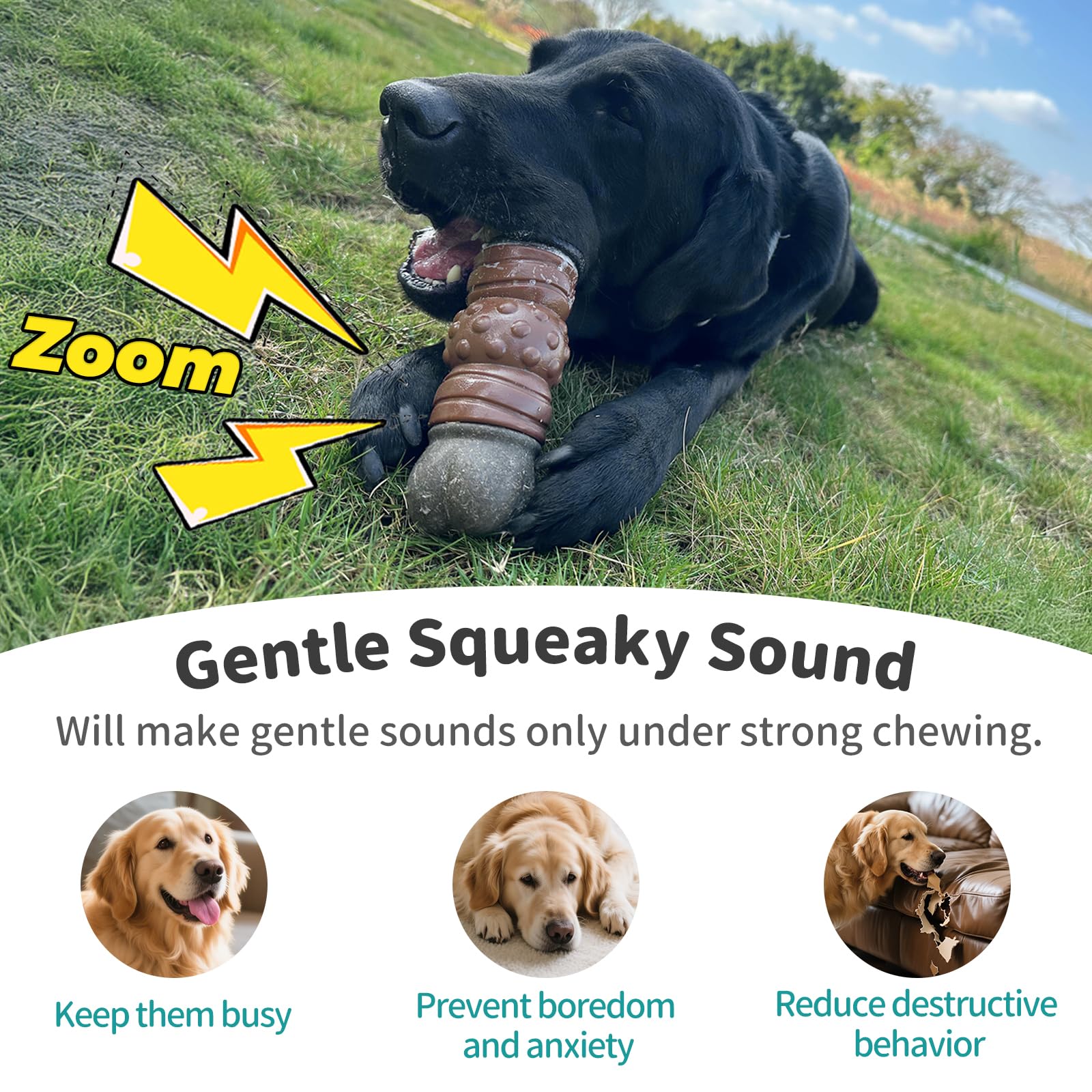 - Gentle Squeaky Sound: Bulit-in squeaker does not require batteries. It makes non-annoying sounds when your dog chews hard on the rubber. This squeaky dog toys provide mental stimulation for your puppies and keep them busy. When you need to focus on finishing work, simply toss this squeaky bone to your furry friend. It will instantly turn their attention to their new favorite toy.