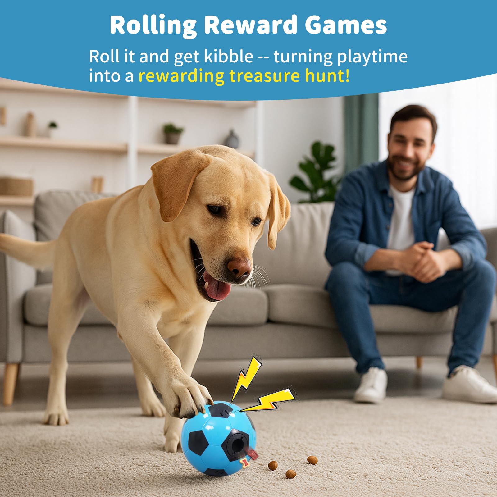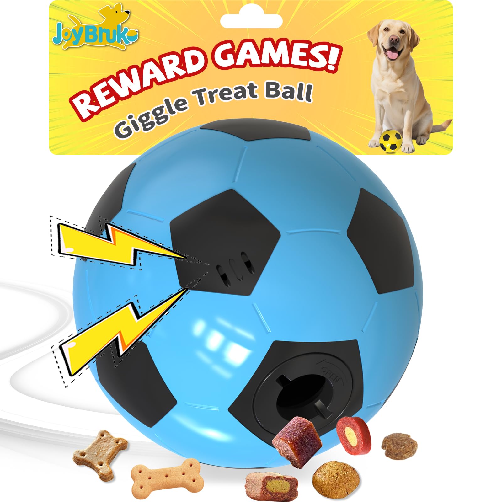 JoyBruko Interactive Dog Toys Treat Dispensers - Giggle Squeaky Dog Soccer Ball Rewards Puzzle to Keep Them Busy, Mental Stimulation Enrichment Food Dispensing for Small Medium Large Breeds, Blue