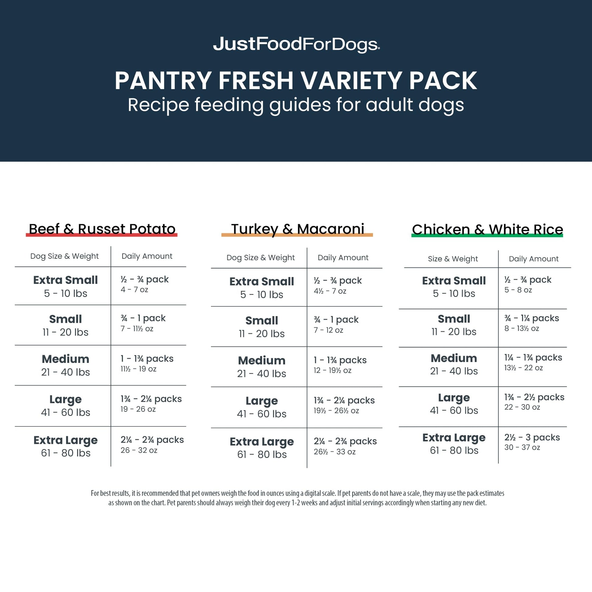 JustFoodForDogs Pantry Fresh Wet Dog Food Variety Pack, Complete Meal or Dog Food Topper, Beef, Chicken, & Turkey Human Grade Dog Food Recipes - 12.5 oz (Pack of 6)