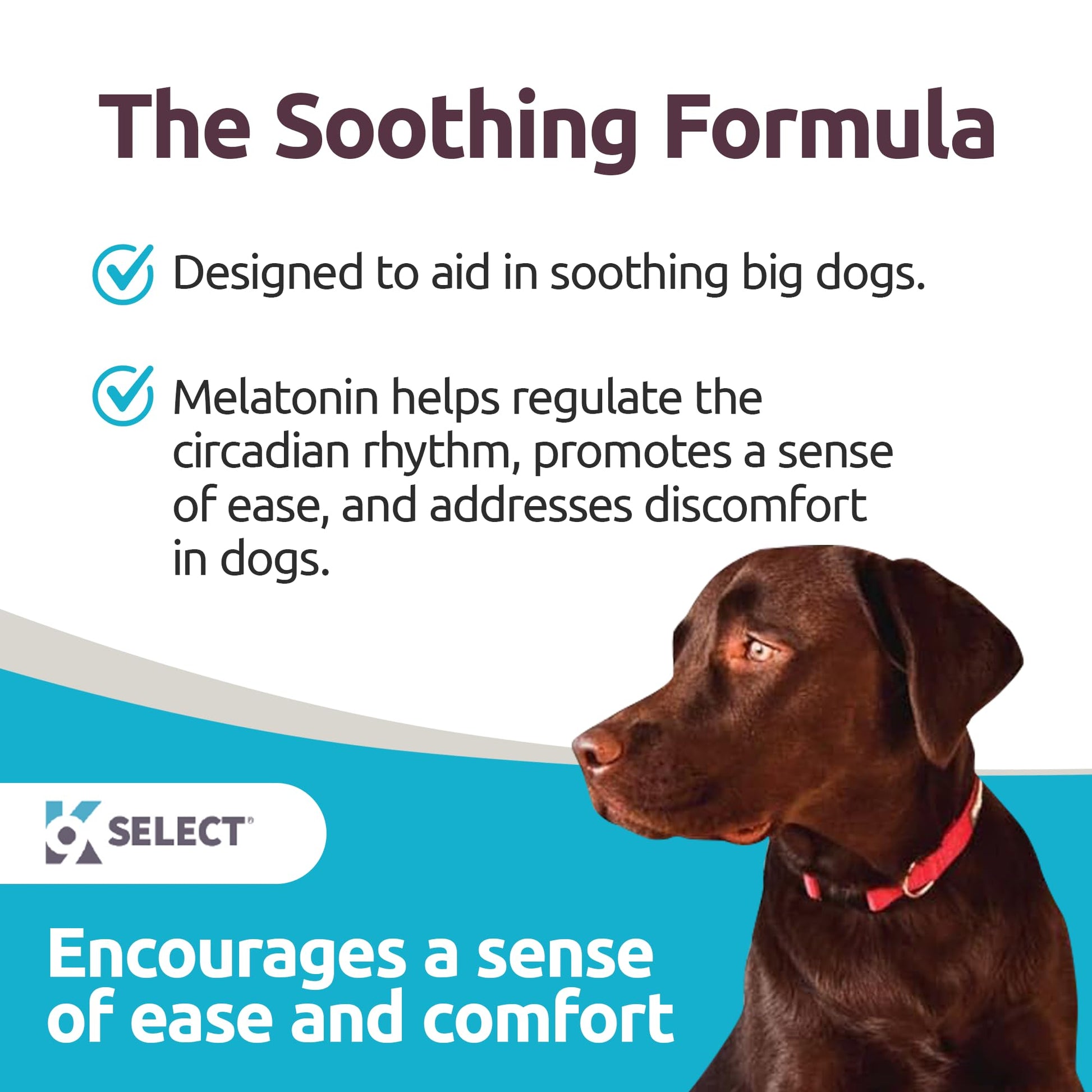 • NATURAL COMPOSURE FOR DOGS: Help your dog stay calm during stressful events like thunderstorms, fireworks, or loud gatherings. K9 Select’s calming aid for dogs helps manage behavioral issues and promotes quiet moments of composure, ensuring your dog feels secure.