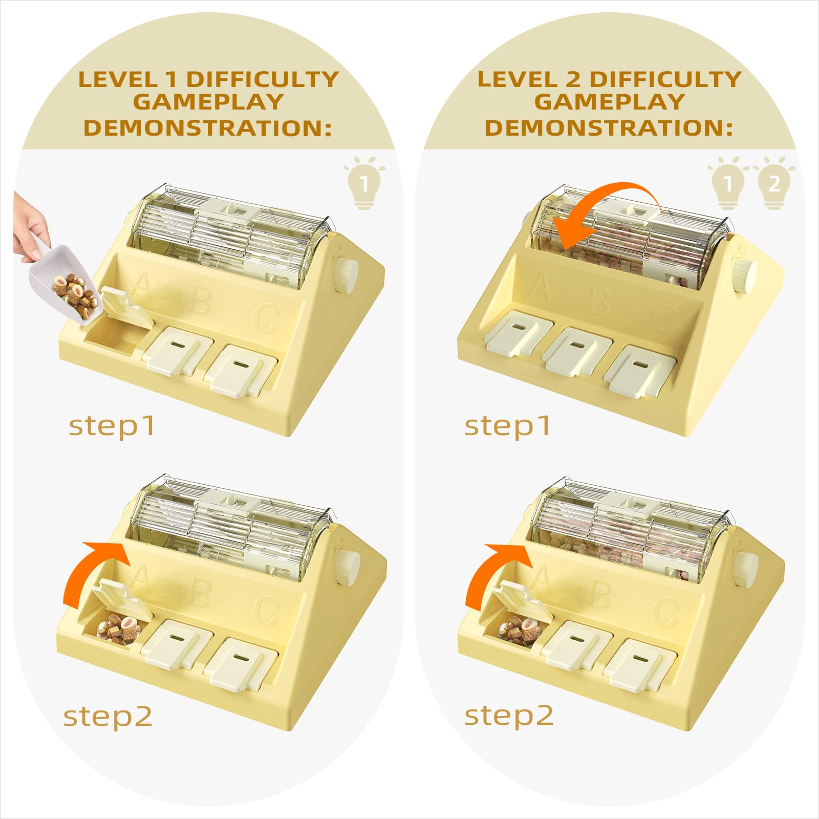 • [Two Difficulty Levels for Progressive Play] This interactive puzzle toy offers two difficulty levels—Level 1 and Level 2. In Level 1, your dog can open 6 food boxes to access treats, while in Level 2, they rotate the central food cylinder to dispense food into the boxes. This progressive challenge helps keep your dog engaged and promotes problem-solving skills. The adjustable design ensures that the toy grows with your dog’s intelligence, offering an evolving experience that encourages learning and play while rewarding them with food.