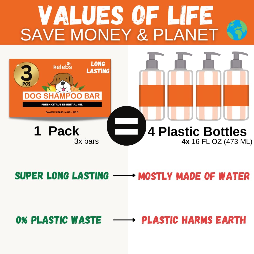 Kelebs Dog Shampoo for Smelly Dogs, Natural Dog Deodorizing Shampoo Bar with Citrus Essential Oils | Eco-Friendly | Zero Plastic Waste | Vegan | 3 Pack