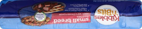 Bring joy to every mealtime with Kibbles 'n Bits Mini Bits Small Breed Savory Beef & Chicken Flavor Dry Dog Food. Specially crafted for little dogs with big personalities, this small breed dry dog food features beef and chicken flavors that will have your furry friend's tail wagging with excitement. The bite-sized pieces are perfect for small mouths, making it easy and enjoyable for your dog to savor every delicious bit. If you’re looking for dry dog food for small dogs that’s bursting with taste, this blend delivers happiness in a bowl! Spoil your dog by the bowlful and watch as they beg for the BITS. Give your best friend the loving, flavorful experience they deserve with Kibbles 'n Bits Small Breed dog food.