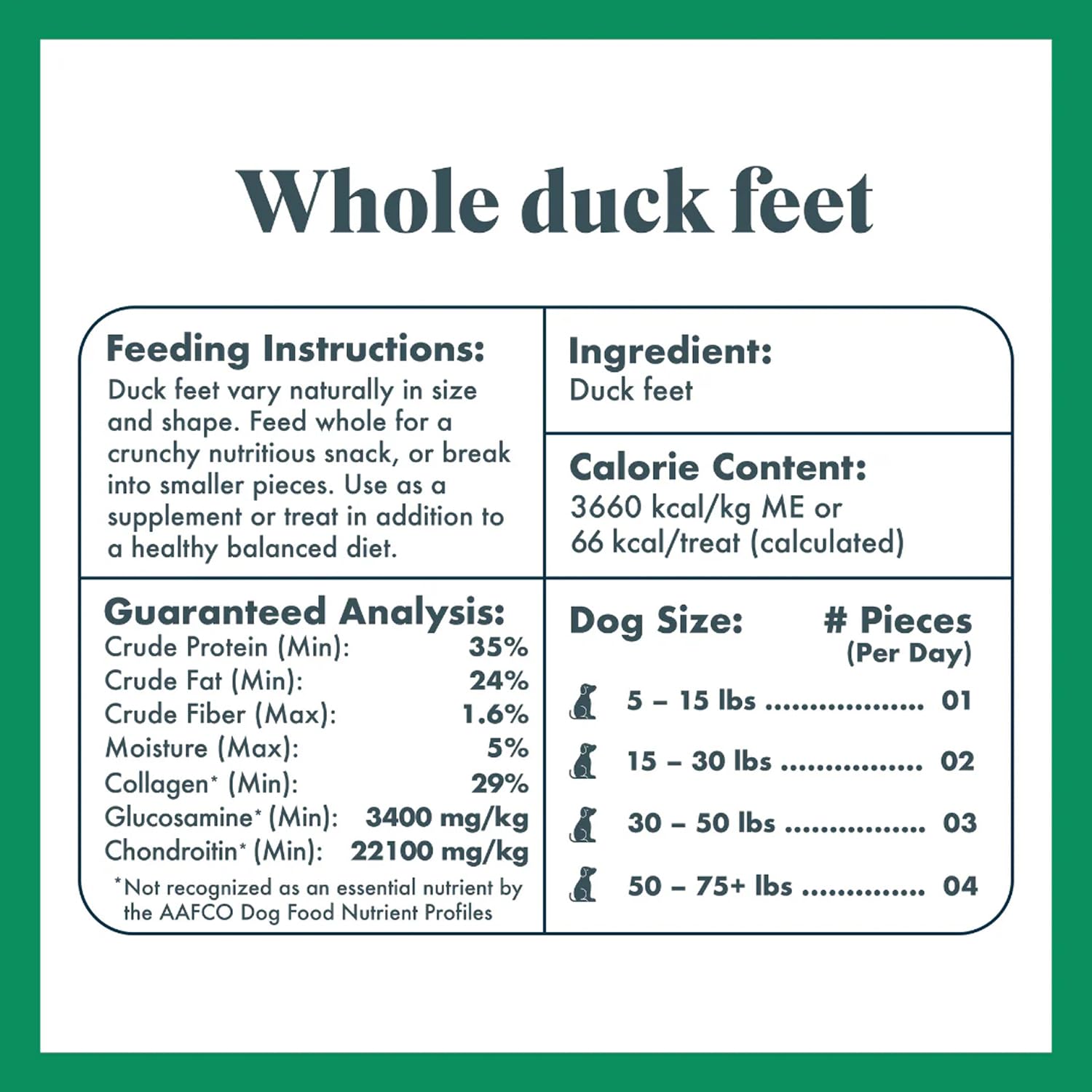 - Made With One Single Ingredient Dog Treat - Just one ingredient: free-range, whole duck feet. Level up your dental treats for dogs snacking game; formulated from nutrient-rich, whole foods for your pet's health and happiness