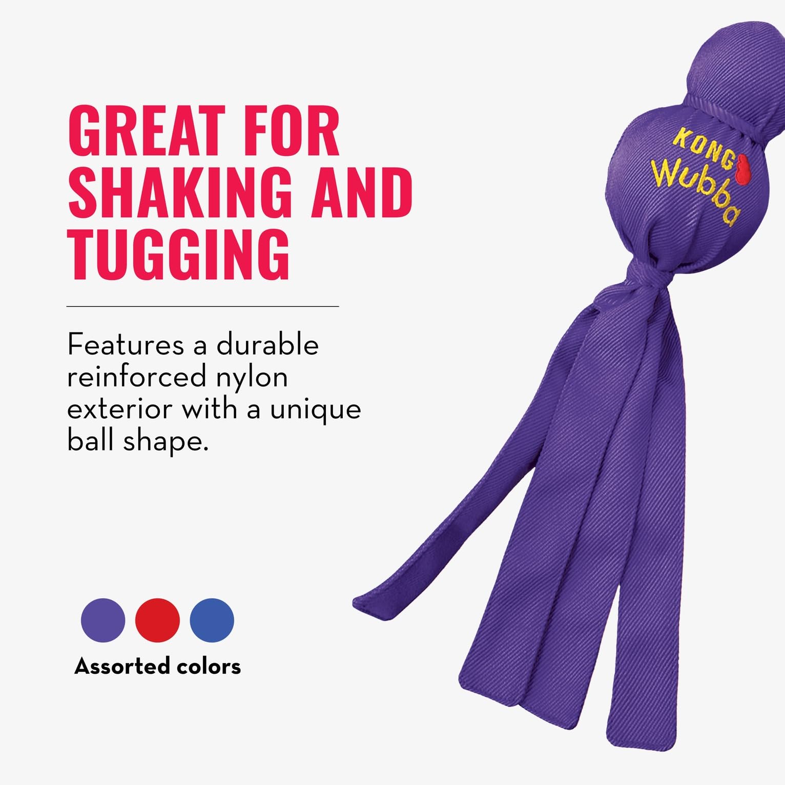 • Tug Toy for Dogs: The KONG Wubba is a fun, interactive tug-and-toss toy perfect for casual games of tug of war and fetch