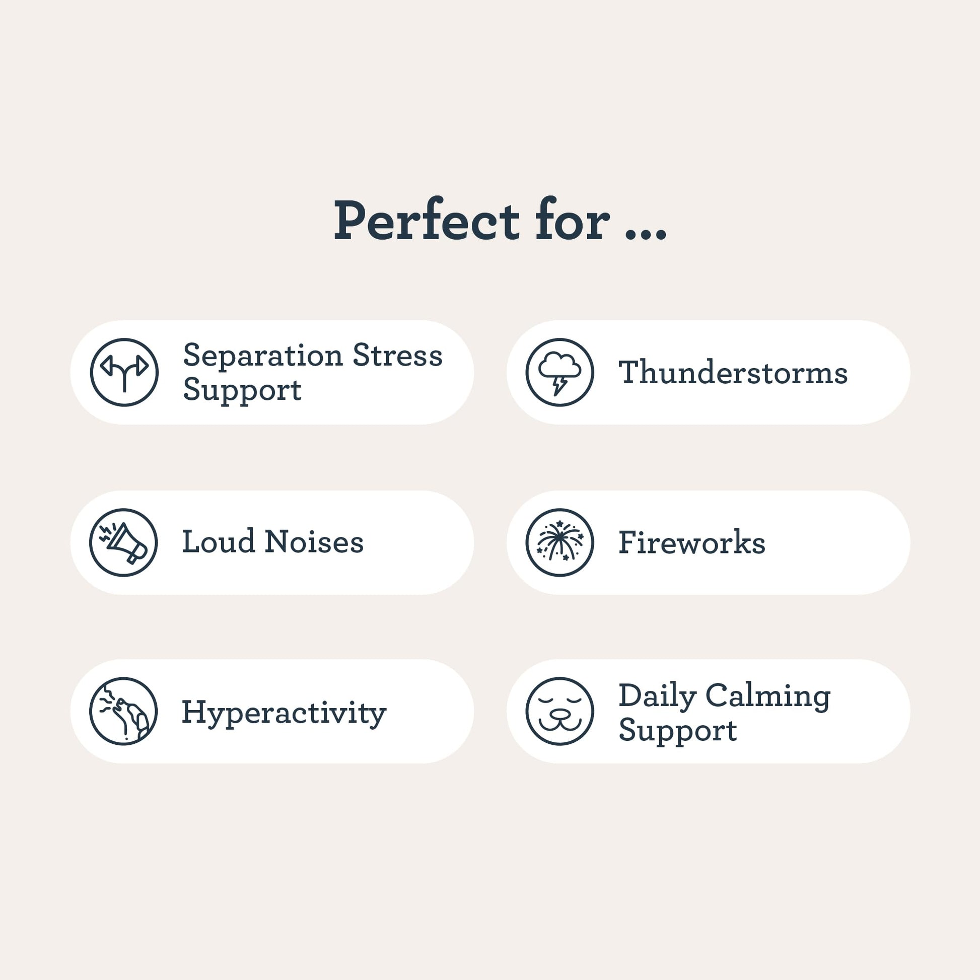HELPS COPE WITH EXTERNAL STRESSES: Helps maintain contentment during separation, travel, motion sickness and tension caused by changes in your pet’s daily routine.