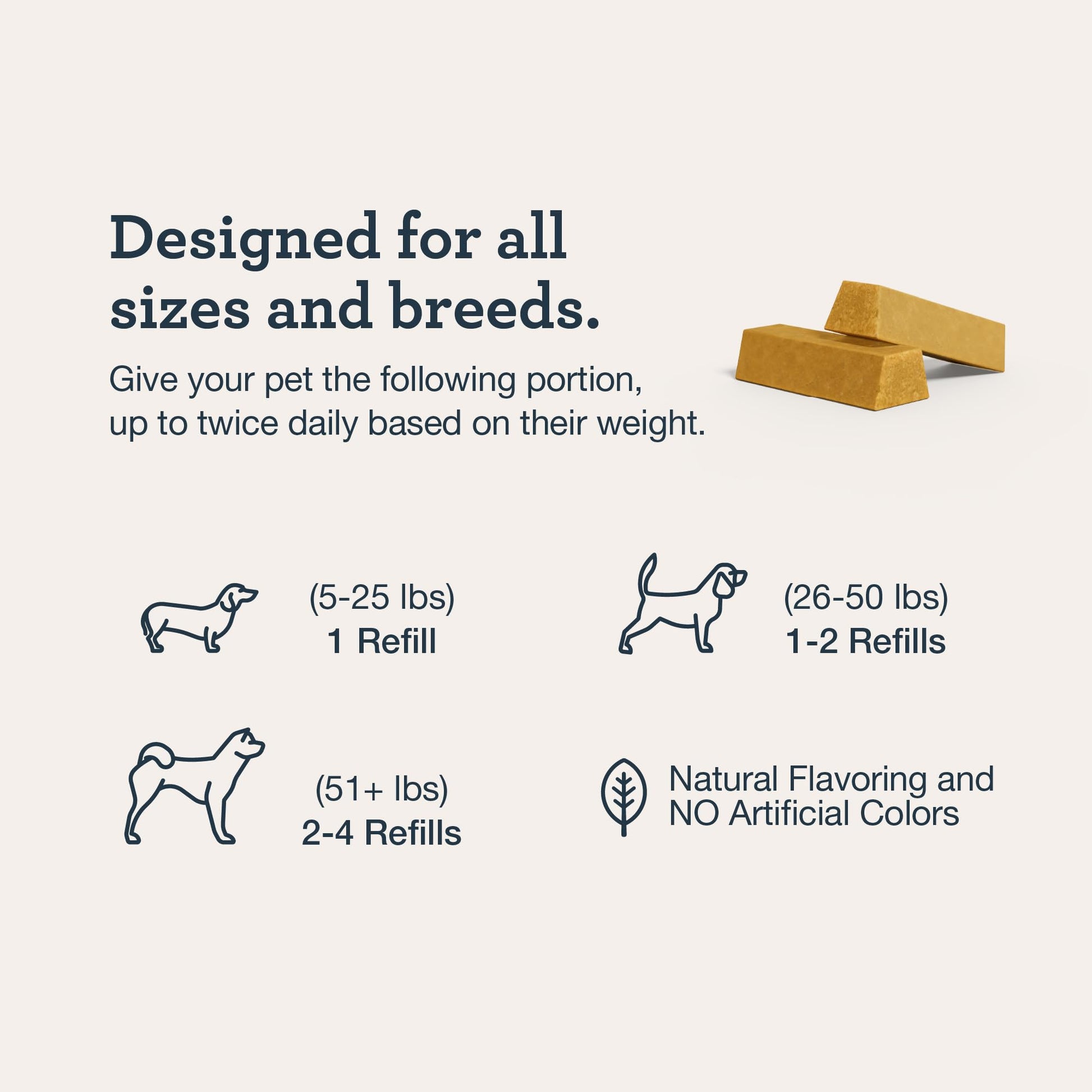 REFILLABLE WITH BACON HARD CHEWS: The starter kit comes with 4 bacon-flavored hard chews. Refill kits (28 hard chews) are sold separately.