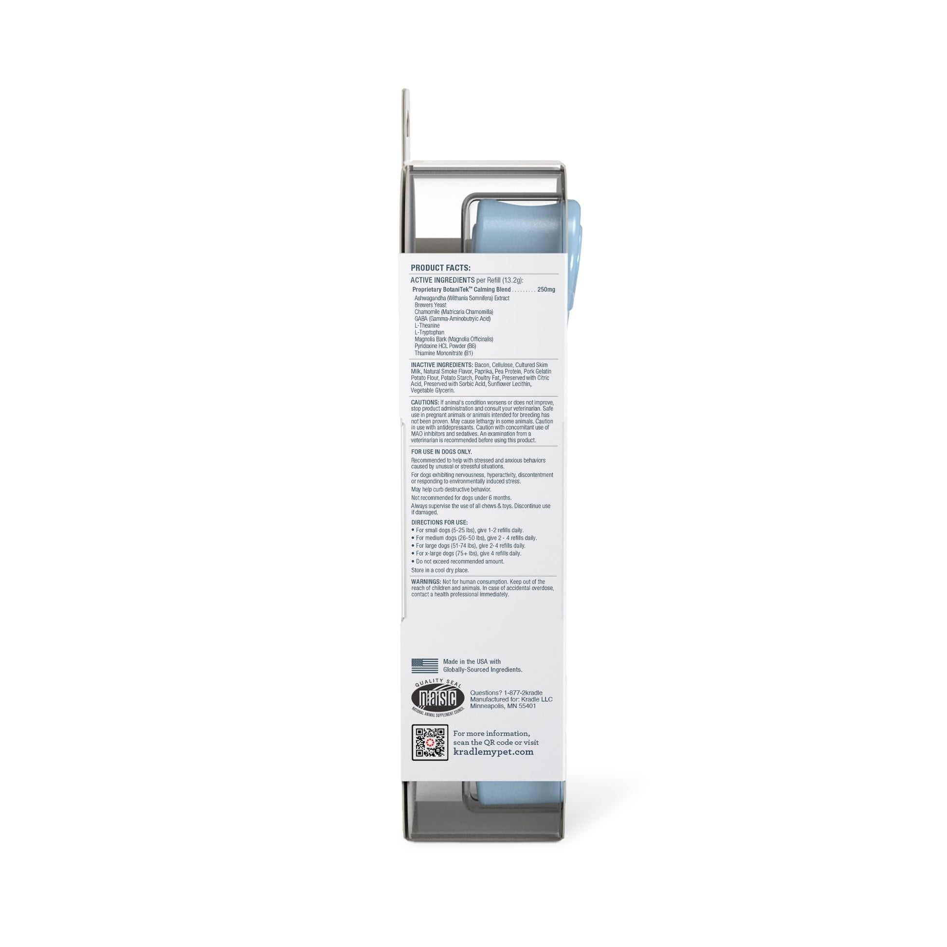 SOOTHING OCCUPYING TOY: Durable, refillable hard nylon bone will keep your dog entertained and happy while calming them with a bacon flavored hard calming chew.