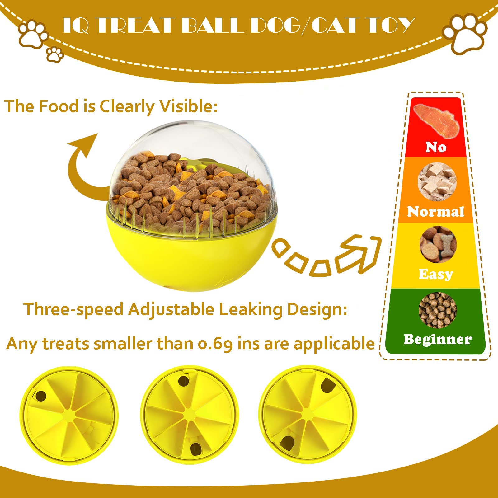• 【Increase IQ Dog Toy Balls】This treat dispensing ball has a food-leaking function, dogs must roll or push the ball to get the food which inside the ball, your pet's brain and intelligence will be improved greatly through healthy exercise.