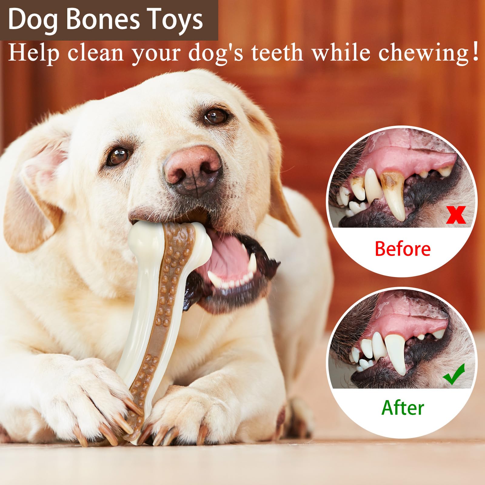 - Appropriate Size: the chew bones for aggressive chewers measure about 5.12 x 1.97 x 1.38 inches/ 130 x 50 x 35 mm, ideal for most medium and large breed dogs to comfortably hold and chew; Please note that puppies can chip off small pieces and leave tooth marks on the toys, they may swallow debris, proper supervision is recommended