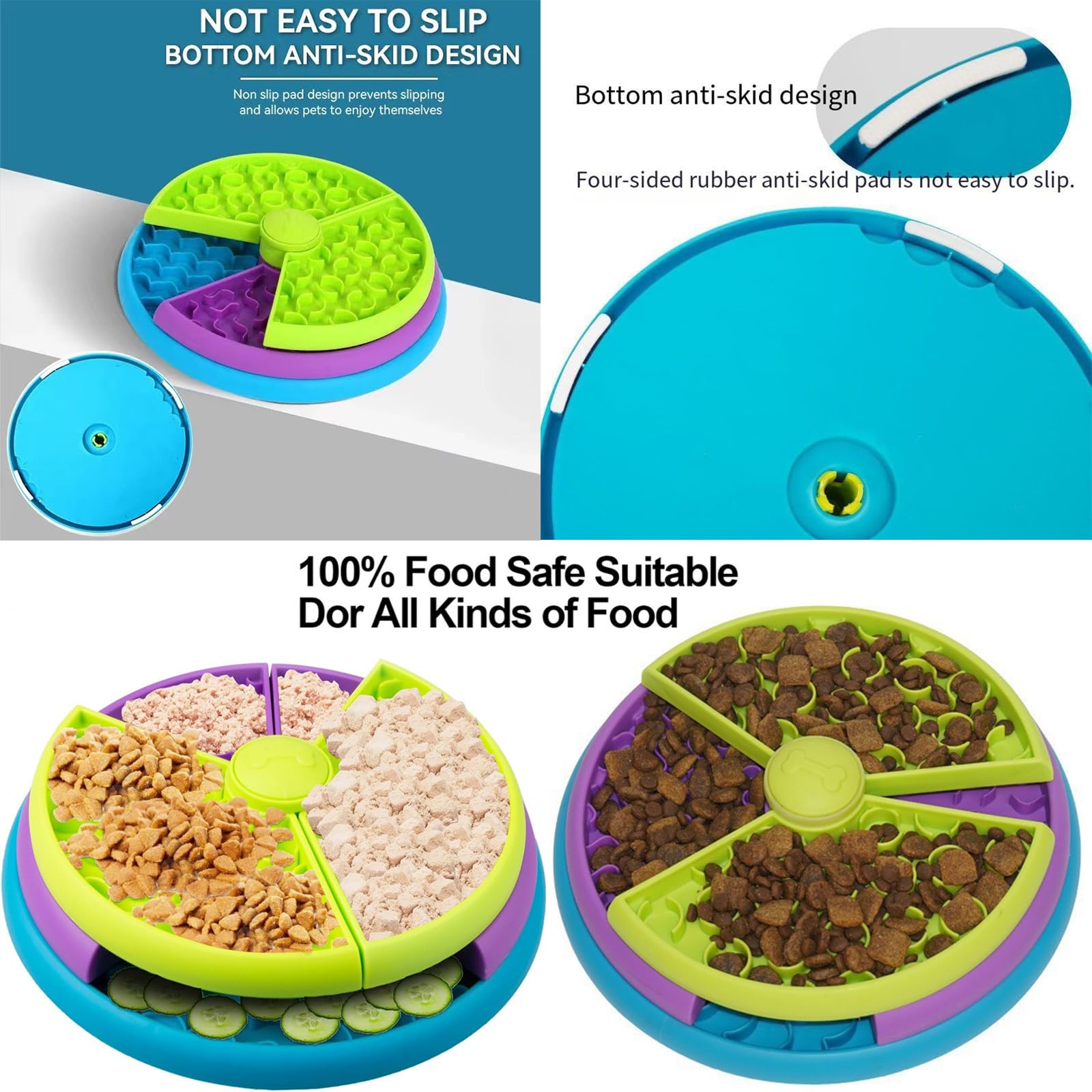 • The licking pads for dogs bottom has non-slip foot pads, which can be used on the floor or mat to increase the friction with the ground and reduce the pet from knocking over during feeding. No sharp points, only rounded corners, which can prevent pets from being accidentally injured during feeding.