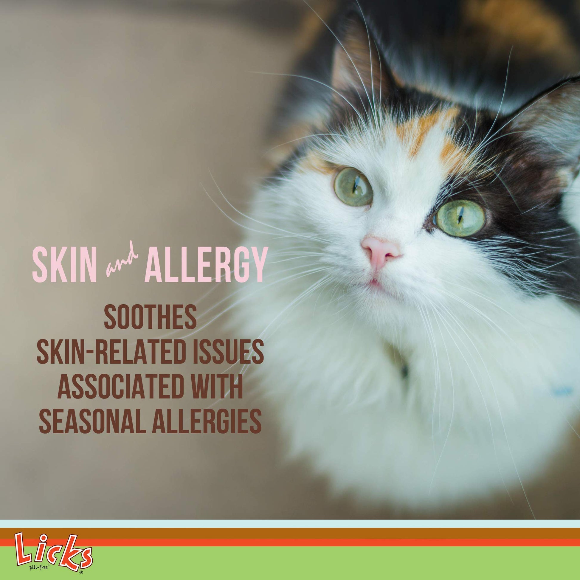 Licks Pill-Free Cat Skin & Allergy - Omega 3 Allergy Relief - Cat Vitamins & Supplements for Itchy Skin - Turmeric Supplement - Gel Packets - 10 Use