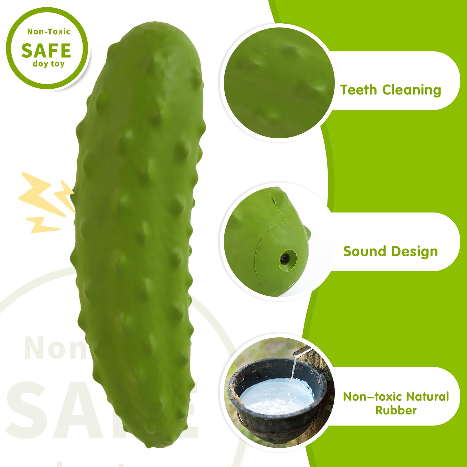 - 🥒【Safe and Durable】This dog chew toy is made from durable natural rubber, it is safe, non-toxic, and sturdy. Featuring thickened and reinforced rubber construction, it can withstand intense chewing by aggressive chewers. Even the dog accidentally swallows a small piece of the toy, this doesn't have a big impact on its health.
