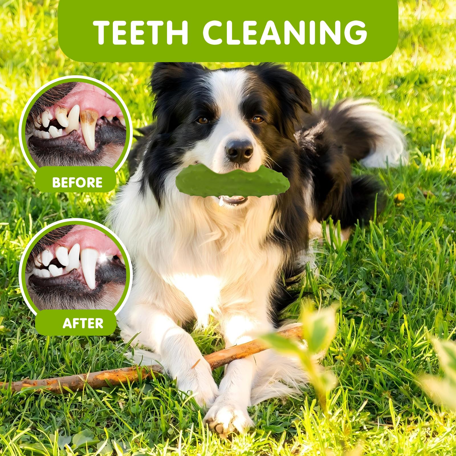 - 🥒【Promotes Optimal Health】Our dog toys have uneven surfaces, which can help clean your dog's teeth and reduce tartar and plaque when they chew on them. Using dog chew toys can also improve your dog's chewing habits, easing teething discomfort, relieve stress, anxiety, and contribute positively to their mental health and overall well-being.