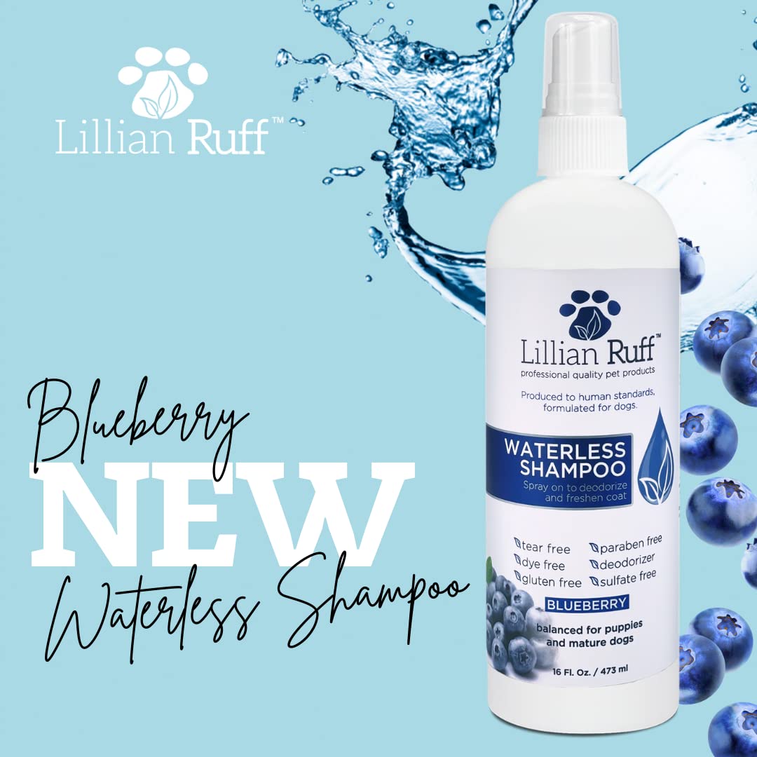 Lillian Ruff Waterless No-Rinse Dog Dry Shampoo Spray with Hydrating Essential Oils - pH-Balanced Dry Shampoo for Dogs - Clean, Condition, Detangle & Deodorize Dry, Sensitive Skin (Blueberry)