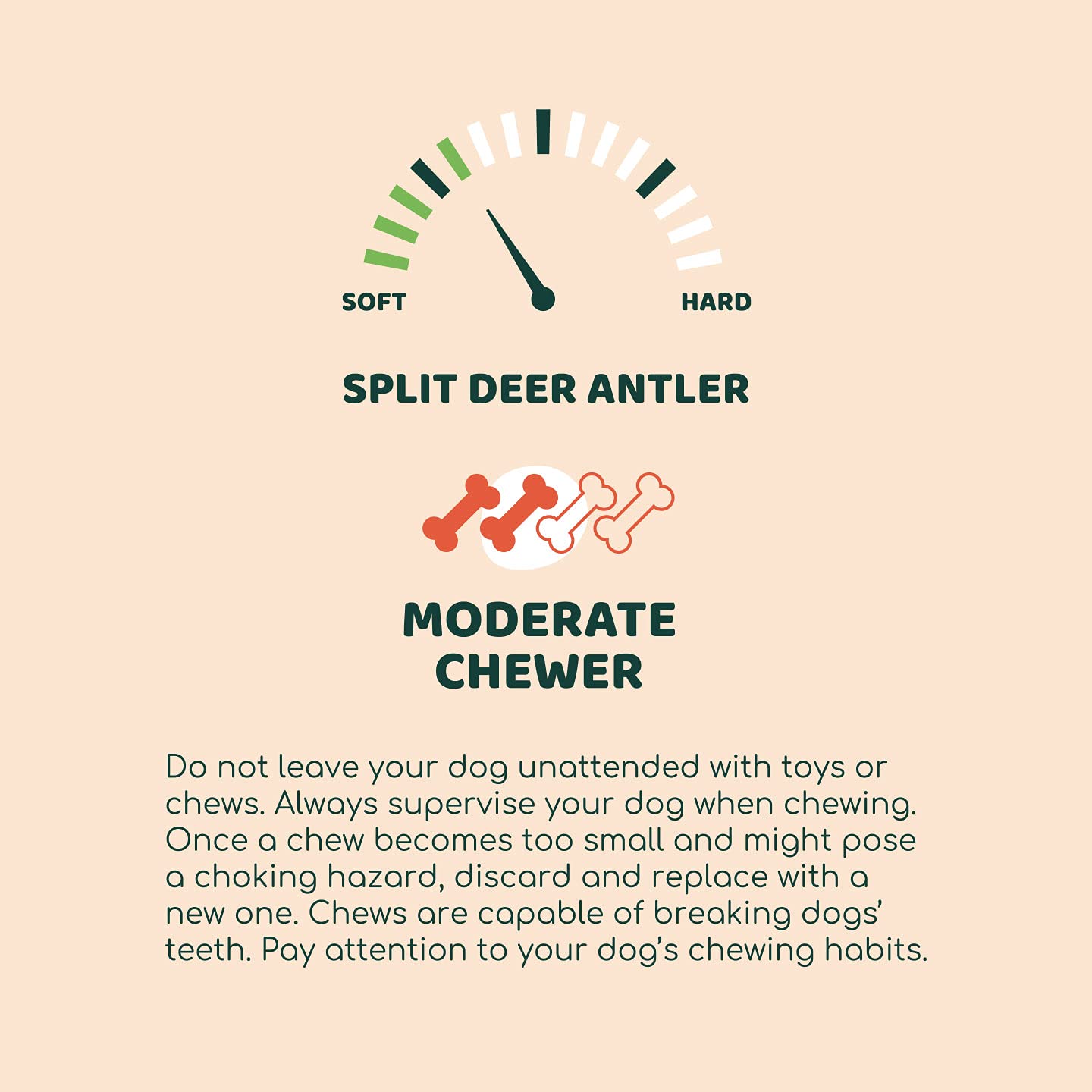 - Durable and Long-Lasting: These tough split antlers for dogs are perfect for heavy chewers, providing hours of fun and entertainment. They help curb your pup’s natural chewing instincts with a healthy alternative, keeping them engaged while reducing boredom and destructive behaviors.