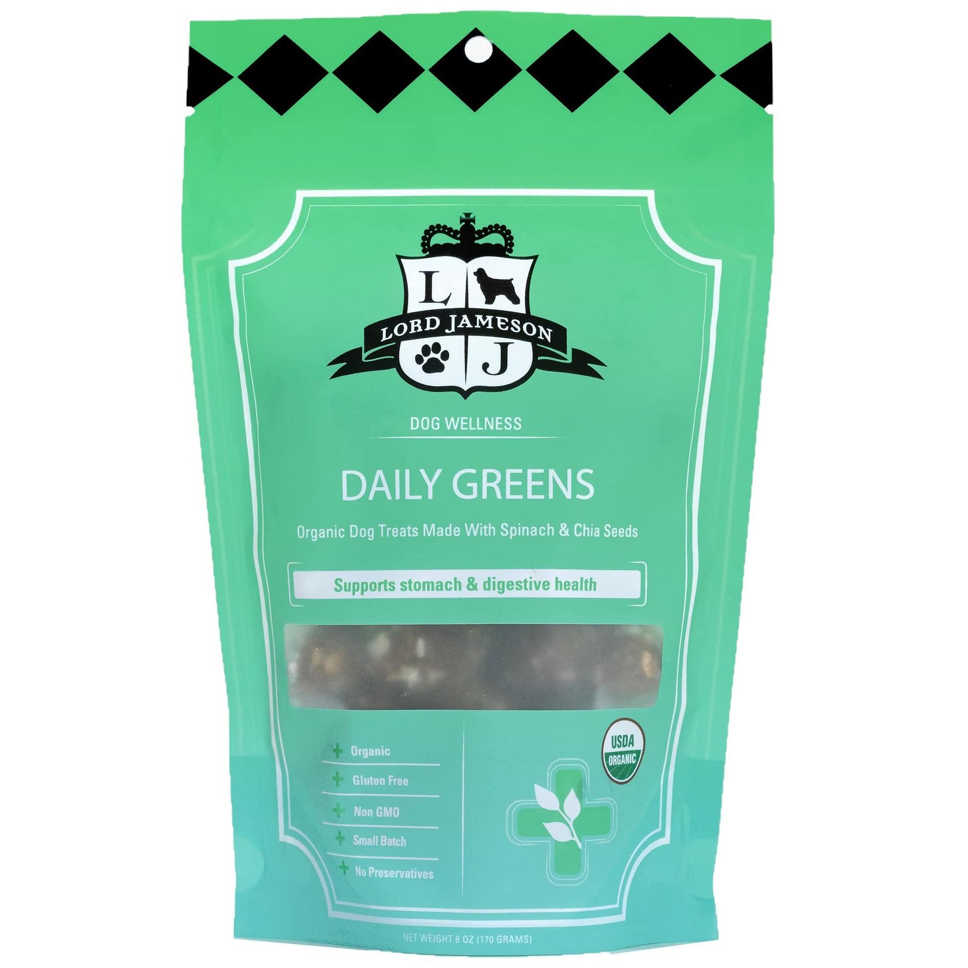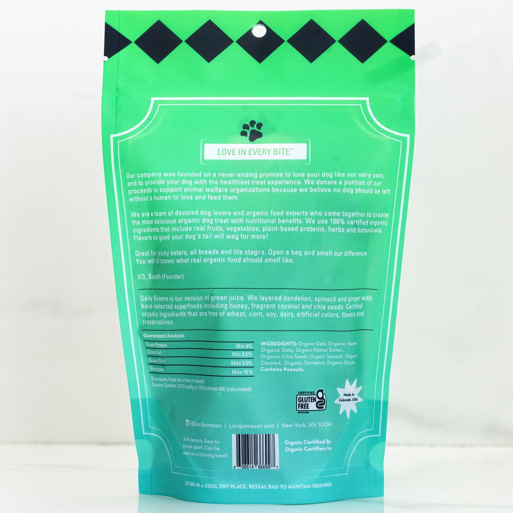 Lord Jameson Daily Greens Soft & Chewy Organic Dog Treats - Digestion Supporting Spinach, Dandelion, & Ginger - No-Bake, Gluten-Free, Preservative-Free, USDA Certified Organic - Made In USA 6 oz