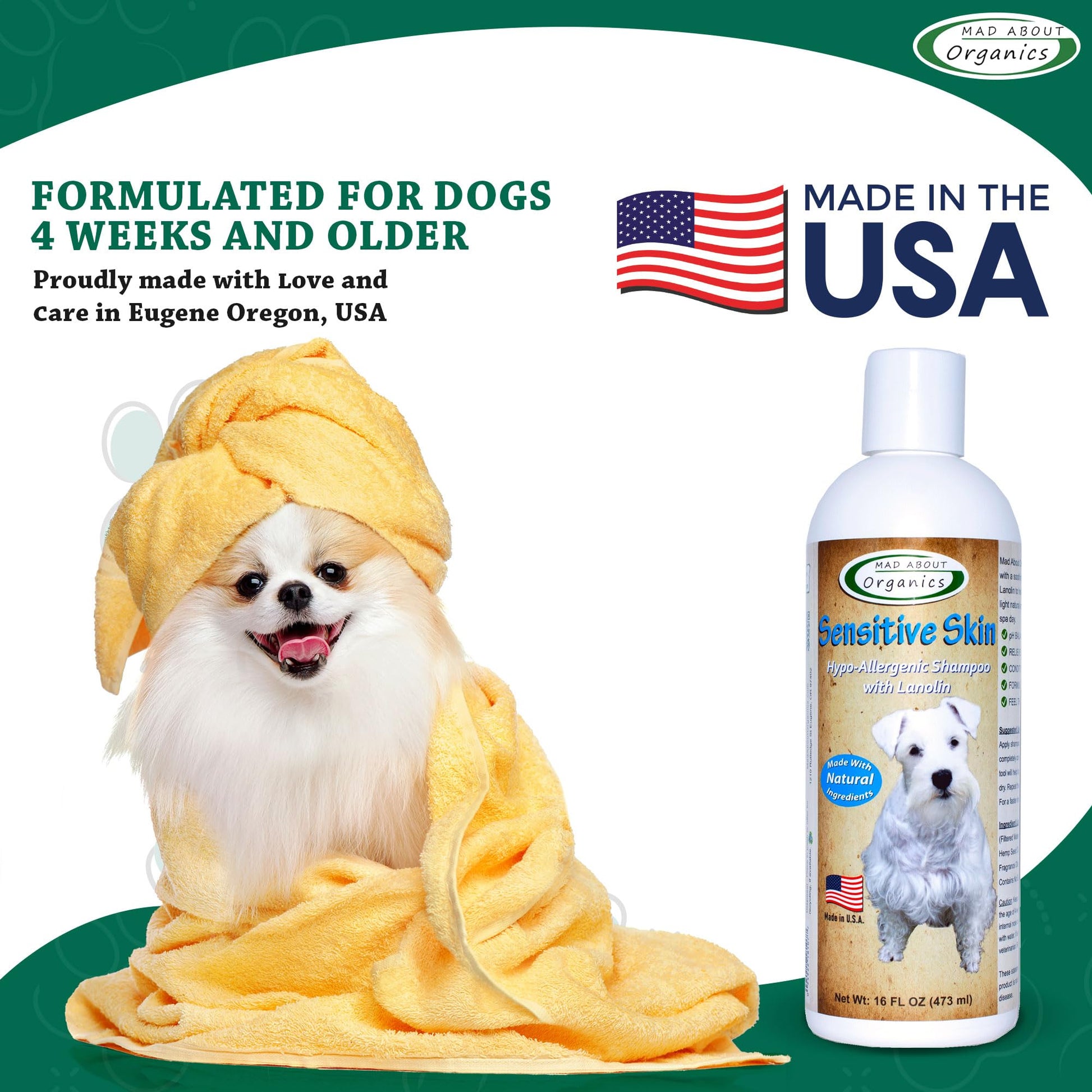 Mad About Organics Dog Shampoo for Sensitive Skin - Lanolin-Enriched Formula - pH Balanced to Support Natural Oils - Light Citrus Scent - Suitable for All Dogs - Moisturizes and Softens Coats - 16 oz