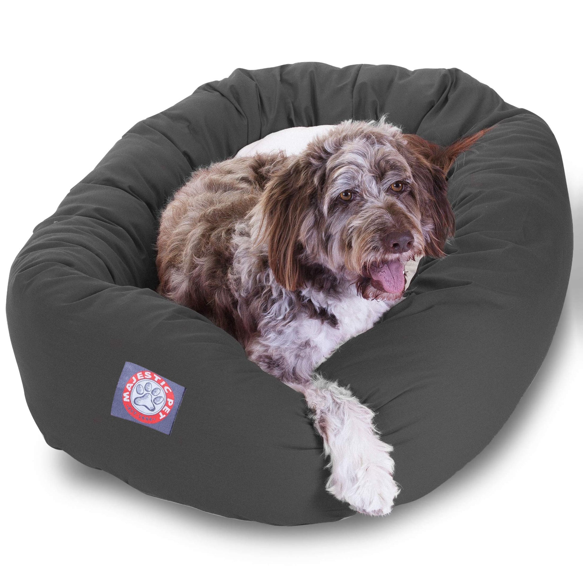 Majestic Pet 52 Inch Poly-Cotton Sherpa Calming Dog Bed Washable – Cozy Soft Round Dog Bed with Spine for Head Support - Fluffy Donut Dog Bed 52x35x11 (inch) – Round Pet Bed X- Large - Gray