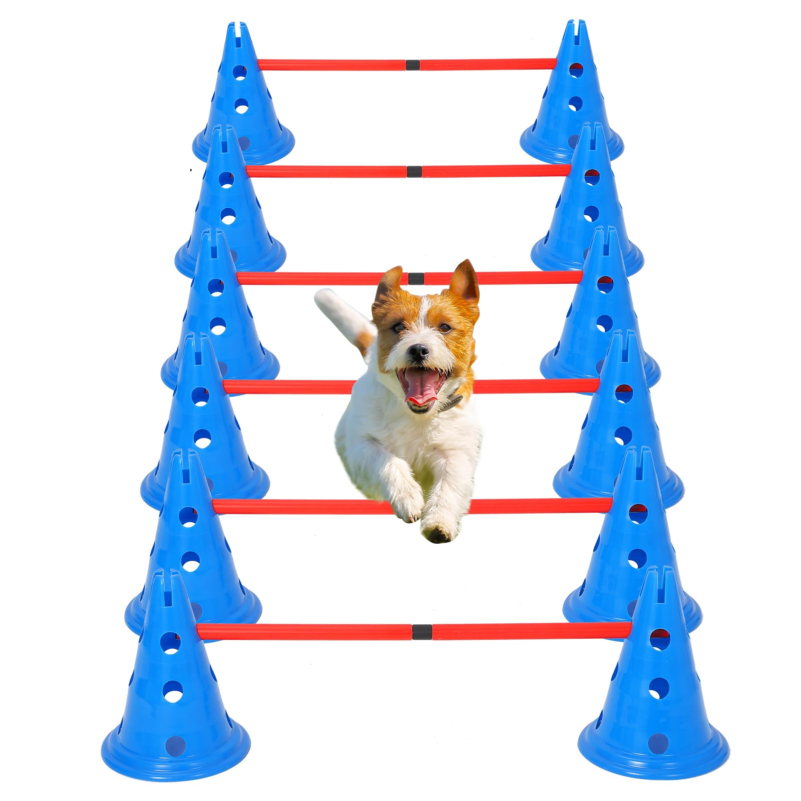 【Multi-Purpose】This Dog Training Set Can Not Only Set Different Heights For Jumping Training, But Also Different Ways (Such As Zigzag, Square, Rice, Etc.) To Train The Dog'S Agile And Coordination.
