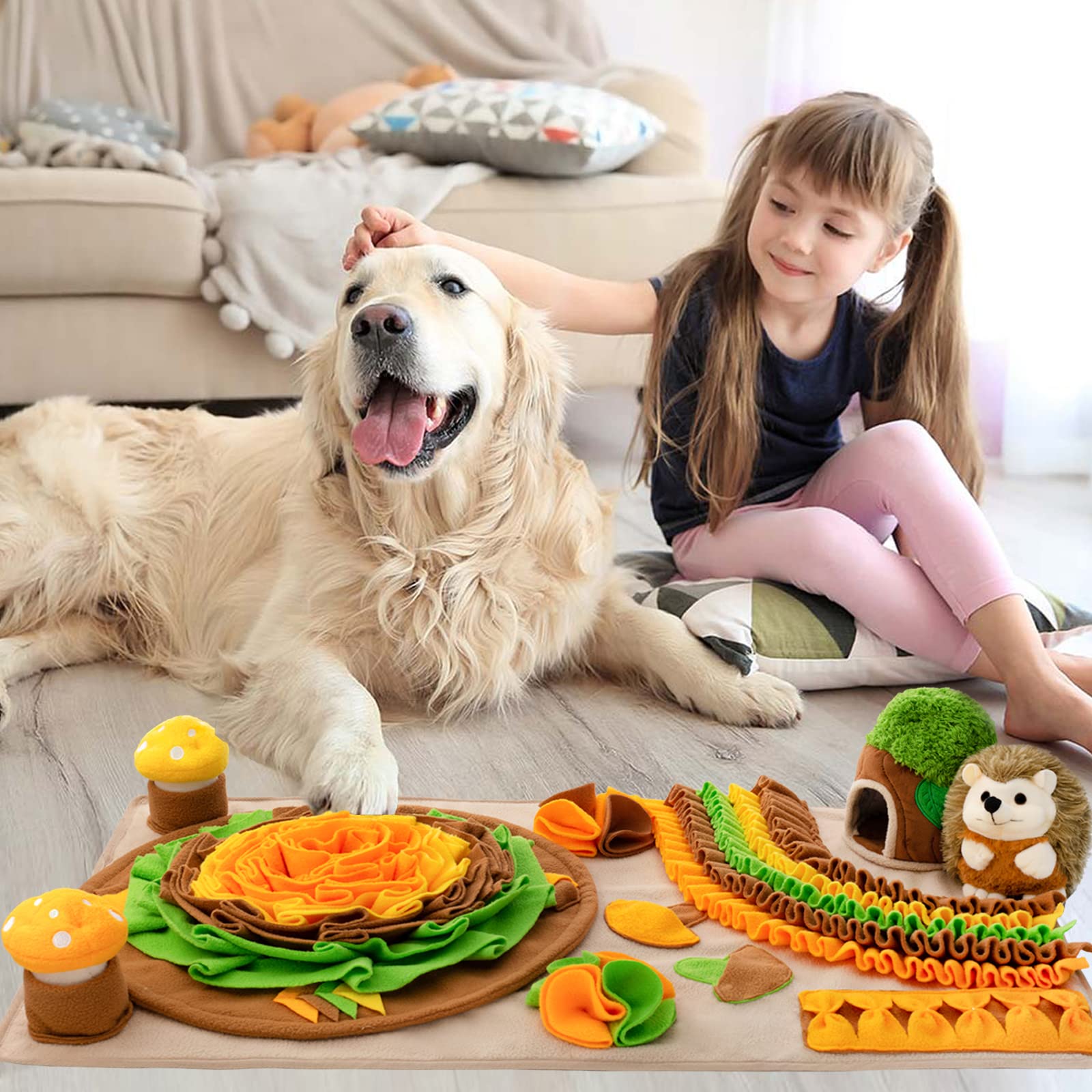 Meilzer Pet Snuffle Mat for Dogs Hedgehog Puzzle Toy Large Sniffing Mat with Squeaky Mushrooms Portable Indoor/Outdoor Digging Mat for Foraging Skills & Stress Relief