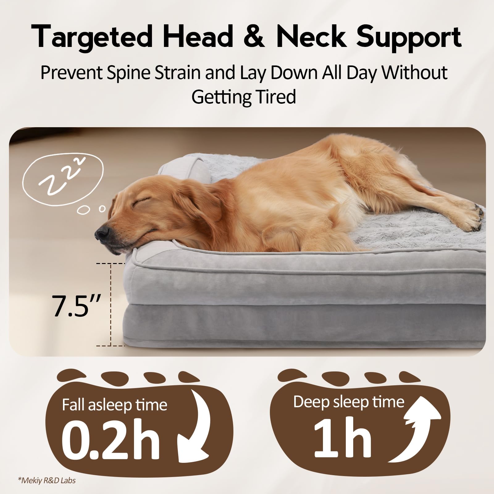 - Neck & Head Support: The XL dog bed features soft bolsters that cushion your pet’s neck and head, creating a cozy cuddle zone to encourage deeper sleep. Meanwhile, the supportive soft foam of this large dog bed adapts to any sleeping position, providing full-body support that helps your pet achieve deeper, more restful sleep.