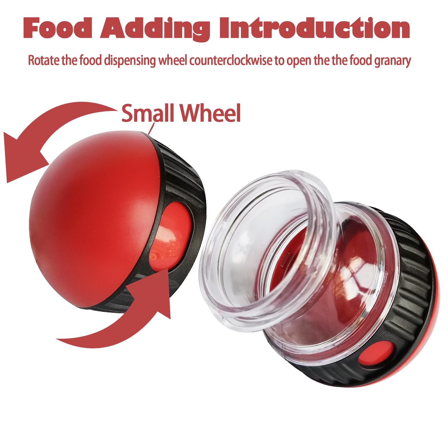 [Adjustable Switch] Each of the two spheres with a food dispensing switch, making it suitable for various sizes and types of pet dry food or snack. The switch can be adjusted according to the different sizes of dog food. It also allows control over the amount of food dispensed, extending or shortening the time it takes for pets to obtain food. It is more conducive to a healthy dog diet.