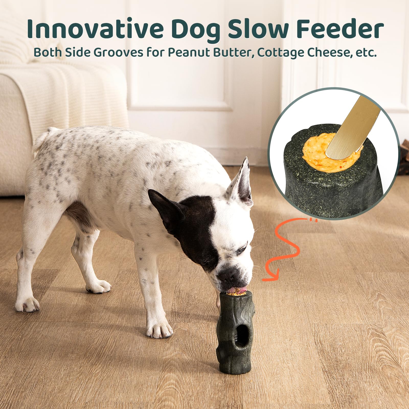 • 【Innovative Dog Toys】 When you're busy, simply smear peanut butter or soft cheese into the side grooves—your pup will stay happily occupied! The ergonomic stump shape ensures comfortable, safe chewing, while our hidden-lock lid makes the toy easy to open/close.