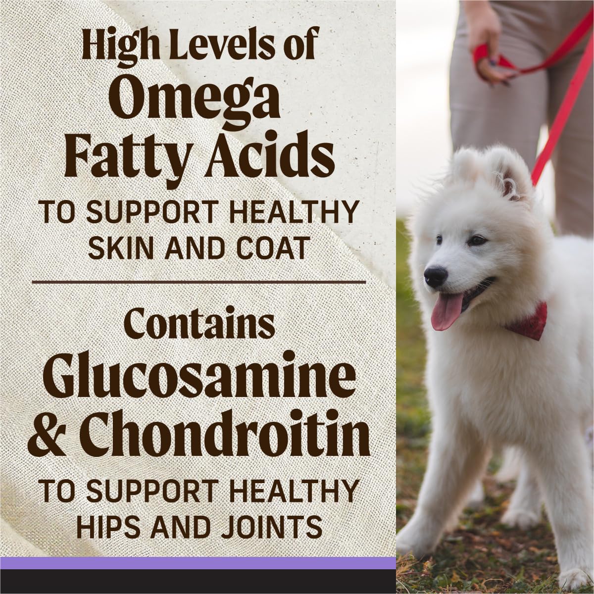 Premium formula contains high levels of omega-6 and omega-3 fatty acids to nourish skin and coat, with glucosamine and chondroitin to support hips and joint