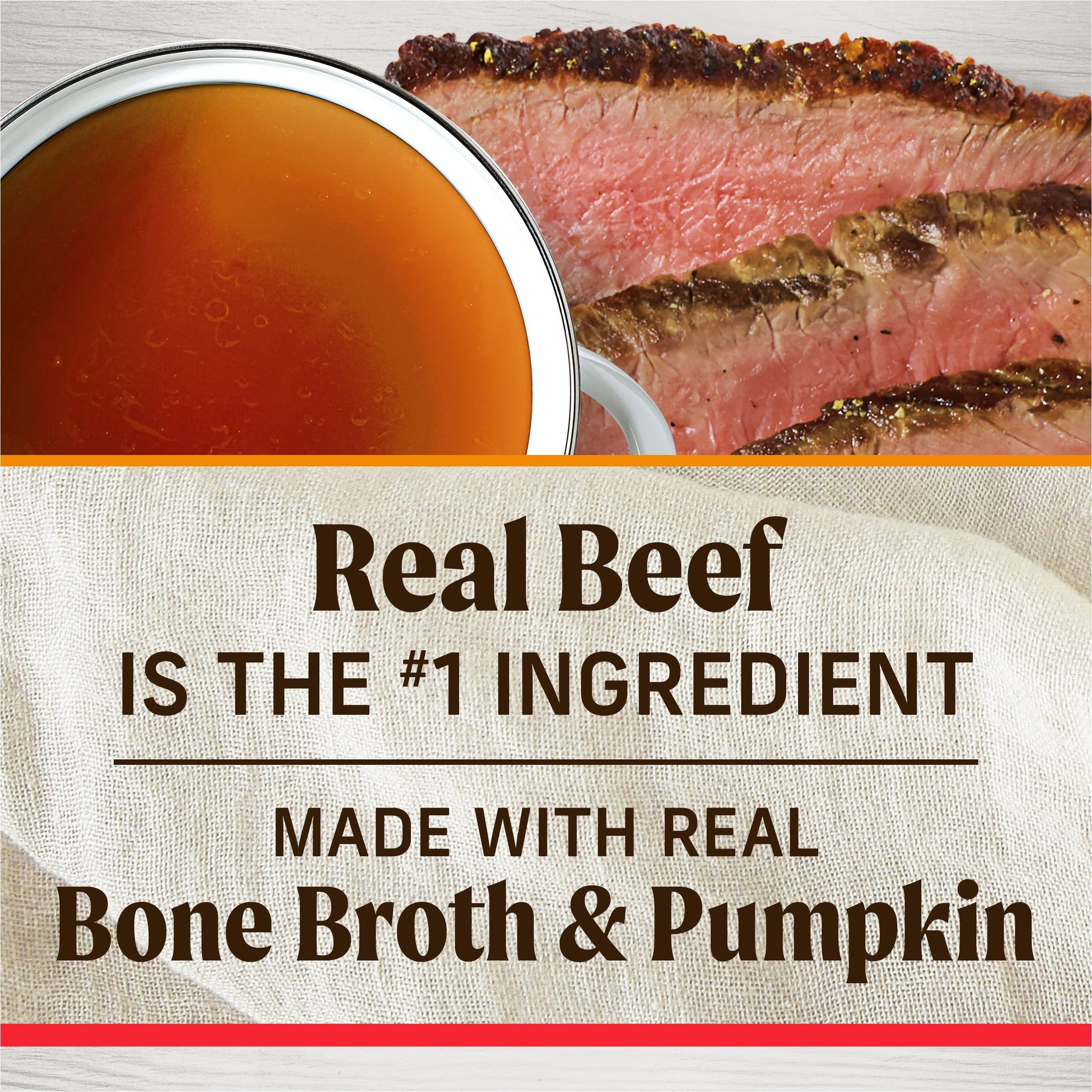 - Real deboned beef is the first ingredient in this natural with added vitamins and minerals soft dog treat. These healthy treats are made with real bone broth and pumpkin for dogs