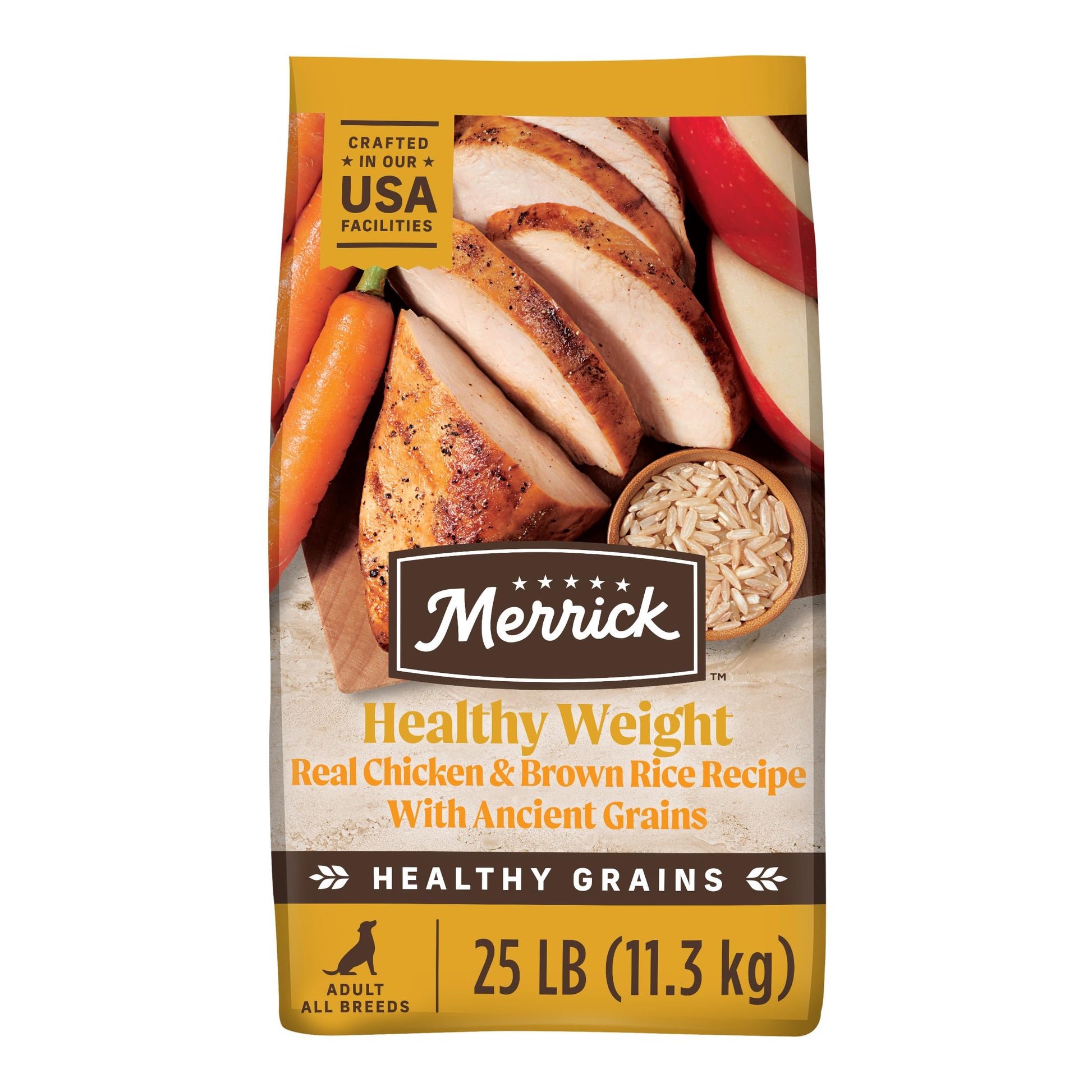 - Merrick Healthy Grains Premium Adult Dry Dog Food, Healthy Weight Recipe, Wholesome And Natural With Added Vitamins And Minerals Kibble With Chicken and Ancient Grains