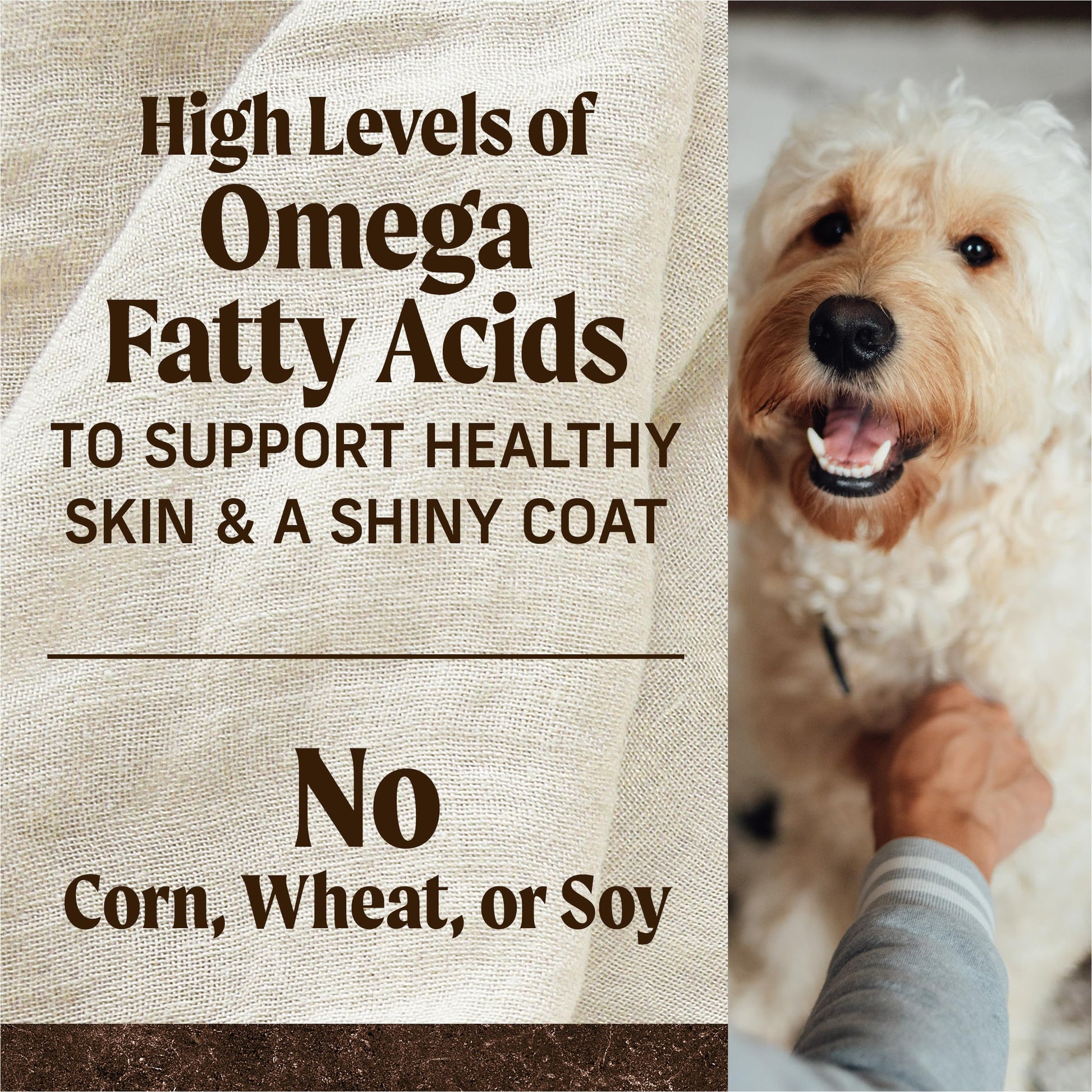 - Wholesome grain free real meat recipe contains omega-6 and omega-3 fatty acids to nourish skin and coat, and glucosamine and chondroitin for healthy hips and joints