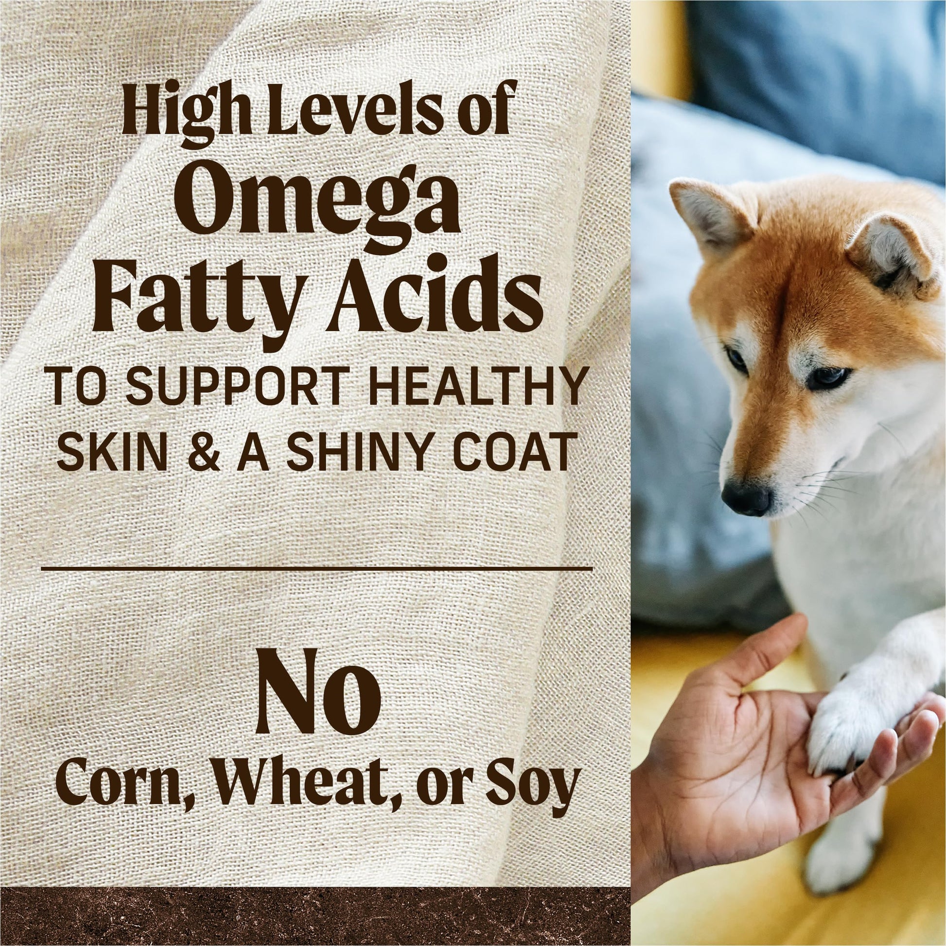 - Wholesome grain free dry dog food recipe contains omega-6 and omega-3 fatty acids to nourish skin and coat, and glucosamine and chondroitin for healthy hips and joints