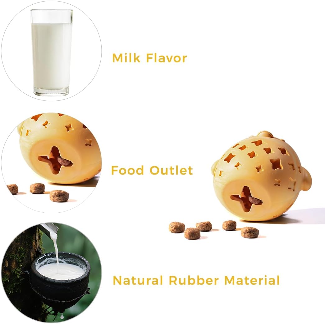 • 100% NATURAL RUBBER - SAFE, SOOTHING & IRRESISTIBLY MILKY: This dog chew toy made from food-grade natural rubber. The gentle milk scent naturally attracts dogs. Soft yet durable, this dog puzzle toys cleans teeth and satisfies chewers while protecting dental health. Designed for medium to large breeds.