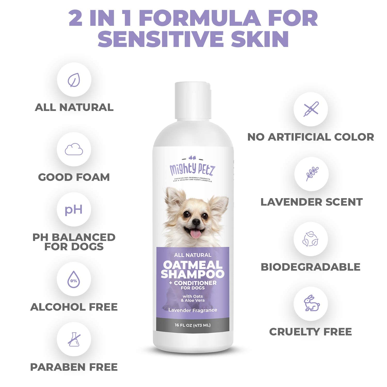 Relieve Itching & Moisturize Sensitive Dry Skin with Mighty Petz Dog Shampoo and Conditioner - For pooches with sensitive, itchy or allergy-prone skin, baths can often cause further irritation and turn into a painful occurrence.