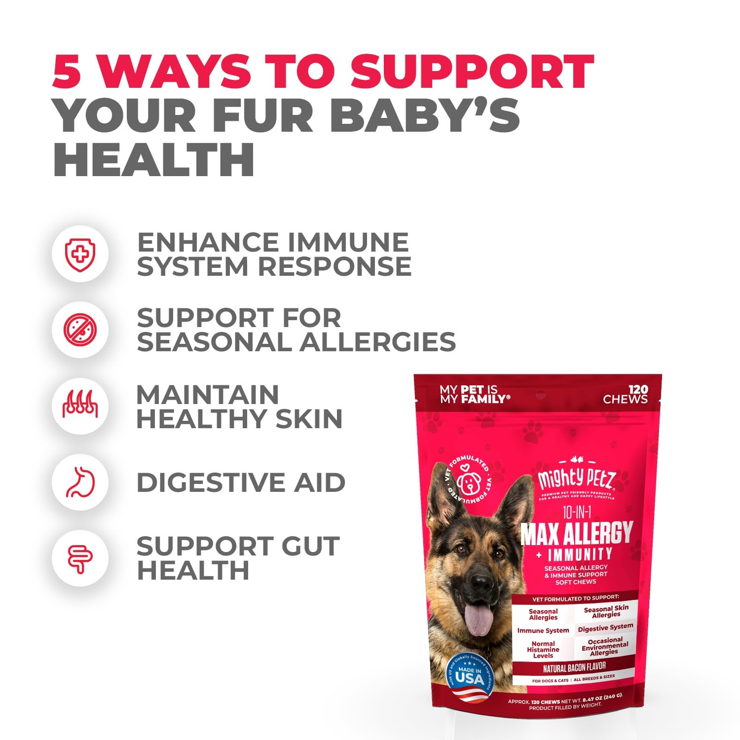 Mighty Petz MAX Dog Allergy Relief Chews - Itch Relief with Colostrum, Probiotics & Immune Support for Seasonal Allergies & Itchy Skin