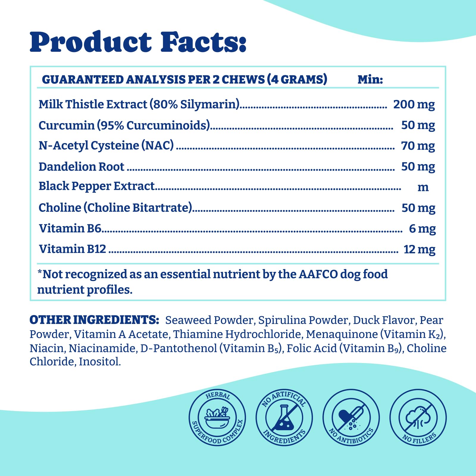 - Kidney & Detox Support – With Dandelion Root and N-Acetyl Cysteine (NAC) to help flush unwanted substances and support kidney health, making it a great addition to your dog’s daily wellness routine.