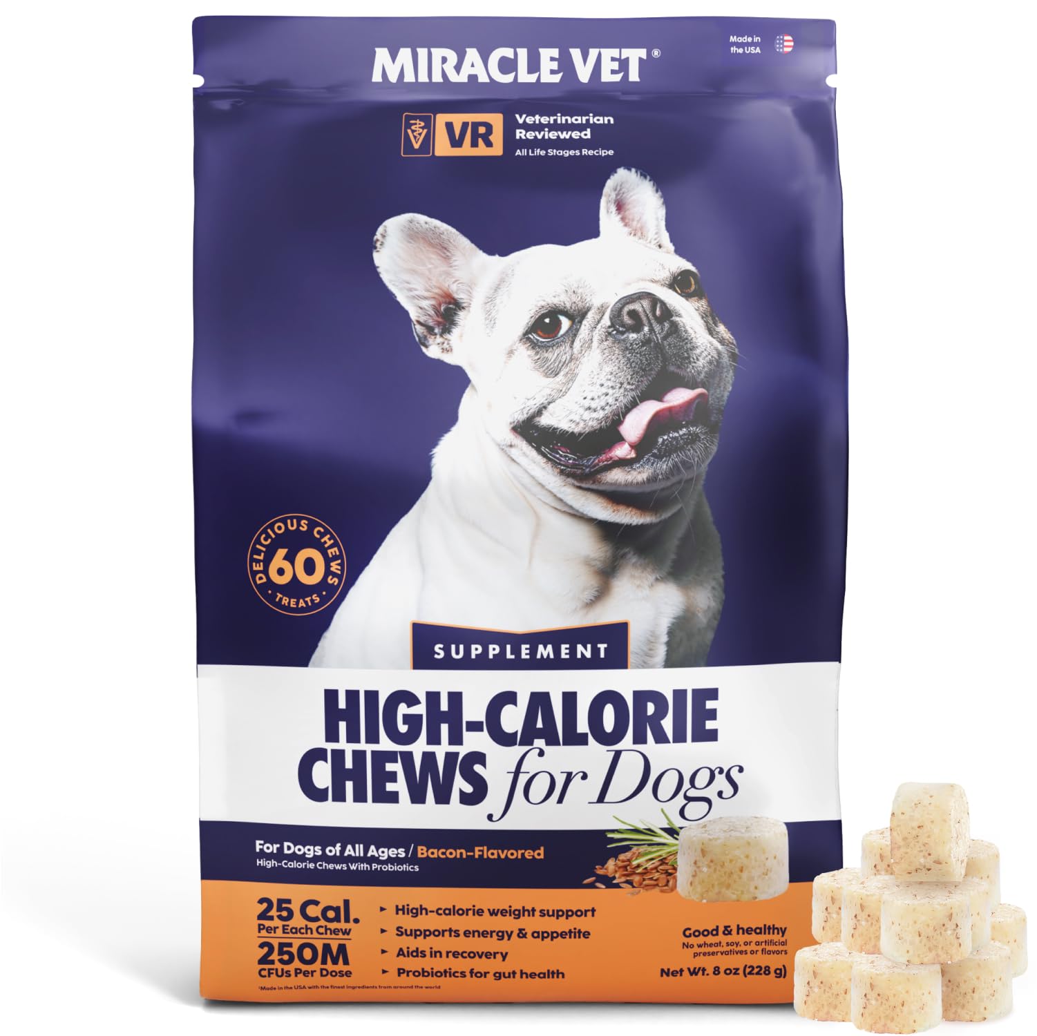 Miracle Vet Dog Weight Gainer Chews for Energy & Mass - High Calorie Dog Food Supplement - Appetite Stimulant & Healthy Weight Gain Supplements for Dogs - 60 Soft Dog Treats for Puppies and Adults