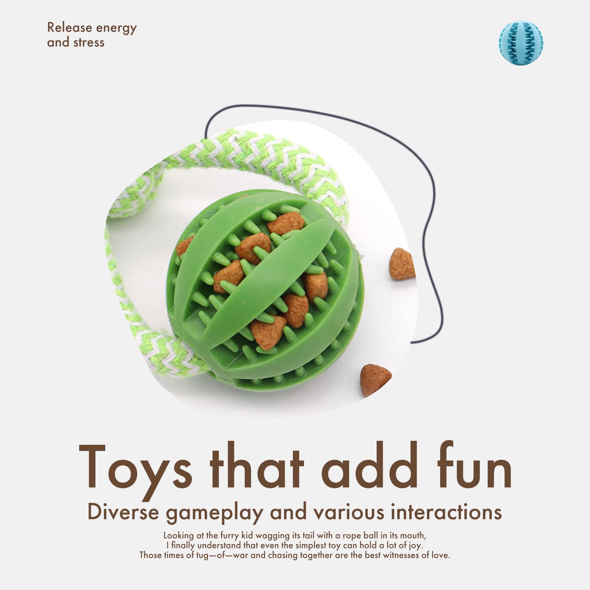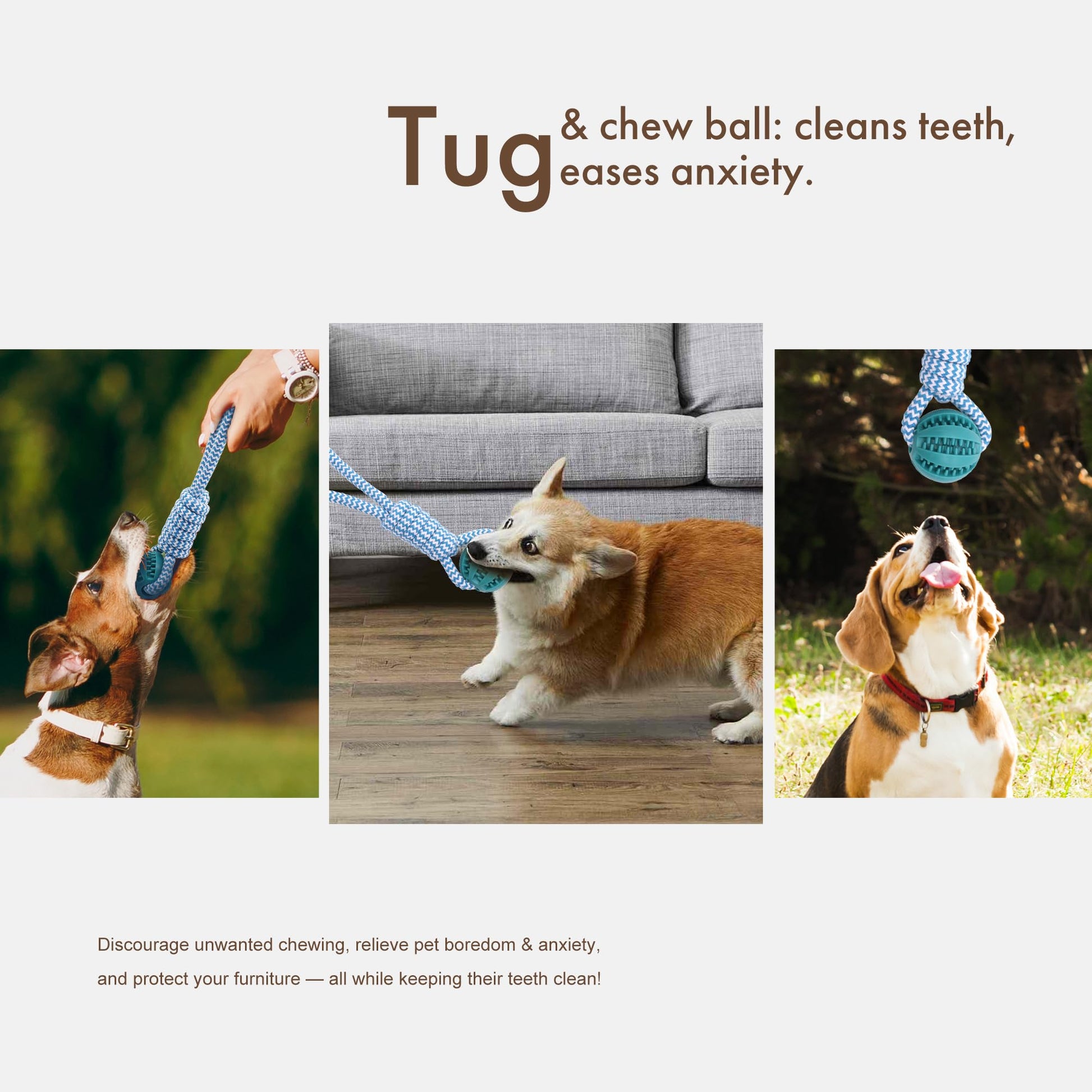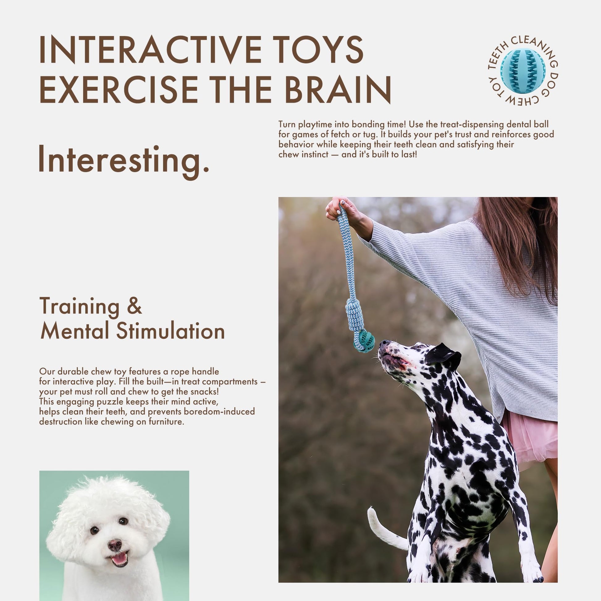 Mira's Pocket Indestructible Chew Toy for Aggressive Chewers - Durable Rubber Dog Teething Ball with Rope, Boredom Relief Puppy Toys (Blue, Small)